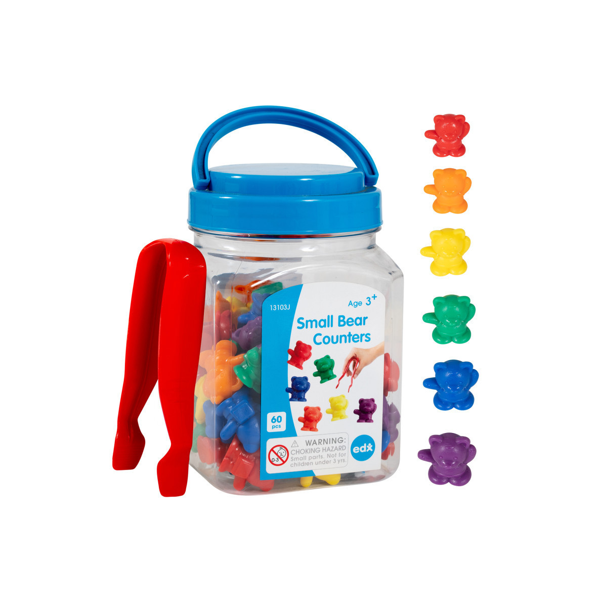 - "BEARY" CUTE LEARNING -- This set of educational toys includes 60 bear counters, 1 pair of tweezers and an activity guide. Use these colorful bears for matching, sorting, counting and more!