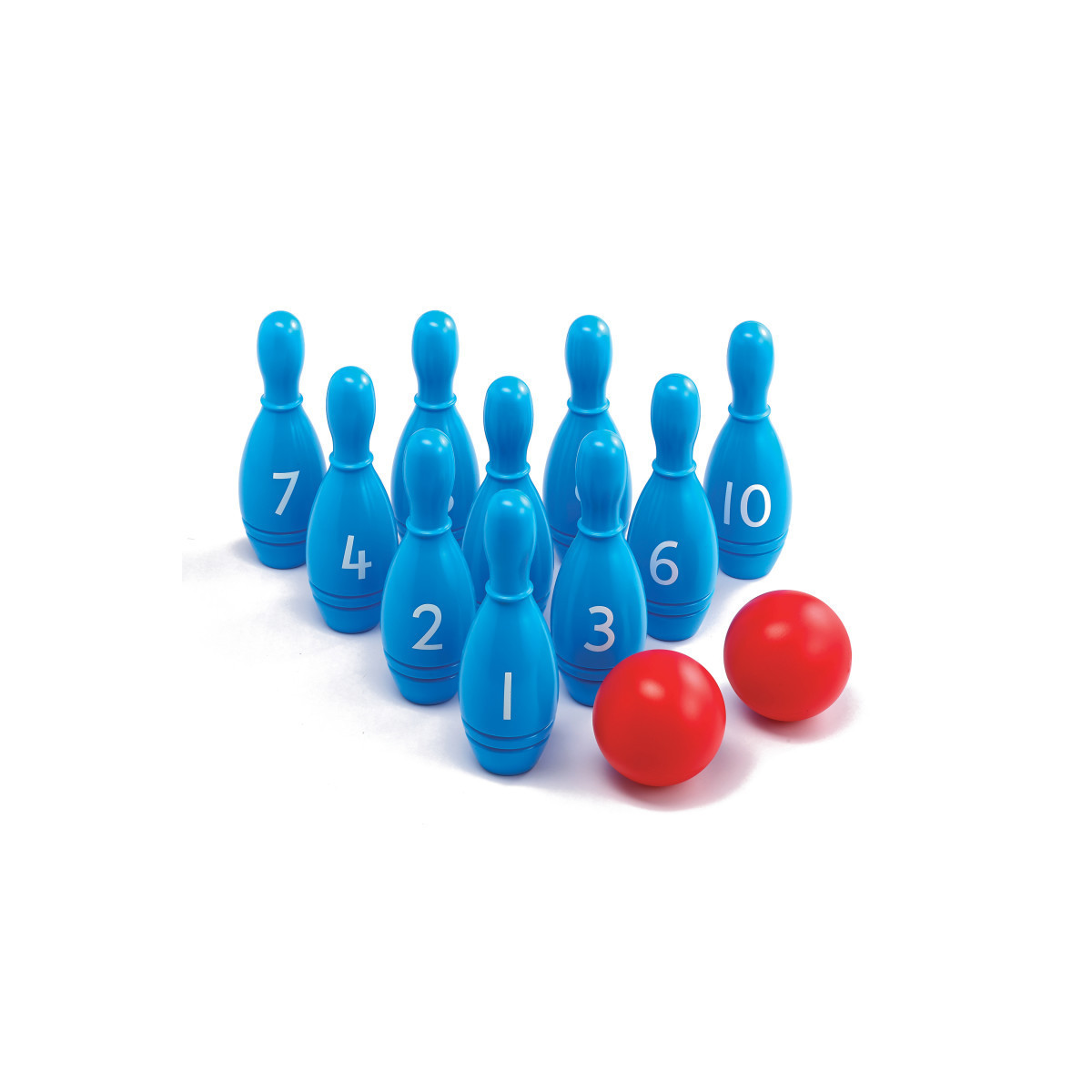 A great way for young kids to practice number recognition and develop gross motor skills. Number Skittles could also be easily adapted for older children to practice simple addition, adding up the numbers of those that they manage to knock down. Develop gross motor skills while at the same time improving basic mathematics skills. Fun activity for students and teachers. 10 skittles (pins) and 2 balls in a vinyl carry bag.