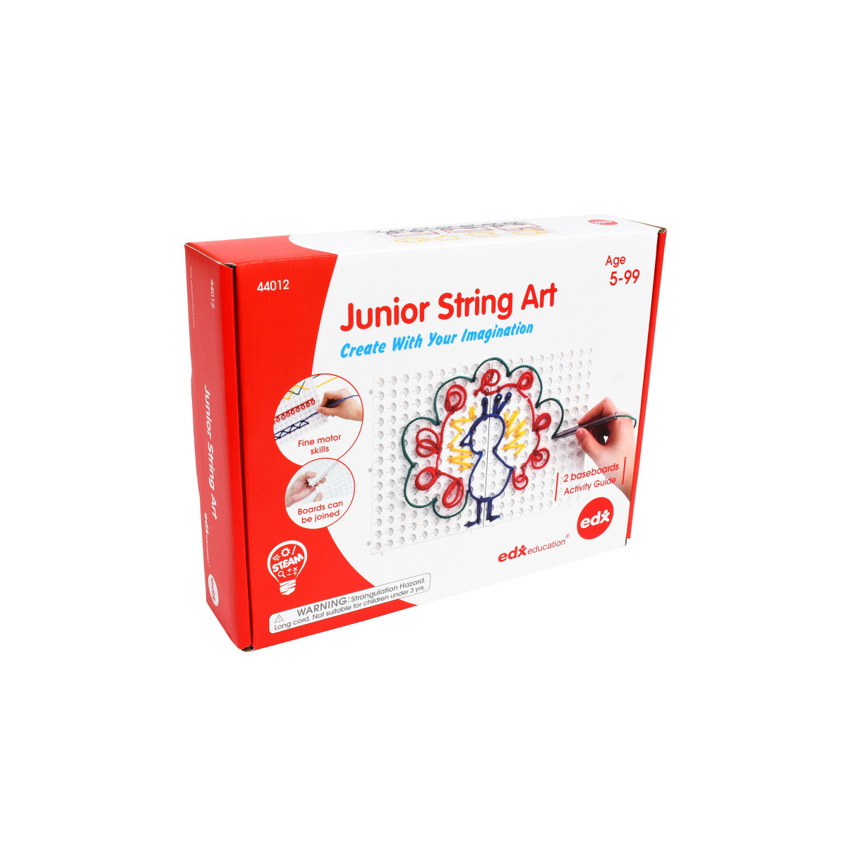 Poke, thread and create! This string art set includes 2 baseboards and 8 laces in 4 colors. Use the string pen to design colorful shapes and patterns on 2 baseboards. Poke the lacing pen through the flaps in each hole. The cord-like, shoestring laces are stretchy with plastic tips. The tips protect the laces from fraying as children play. Develop essential hand-eye coordination and pincer grip, which prepares children for writing. Practice forming letters and numbers. Explore early math and measure lengths, write numbers, form shapes and demonstrate symmetry. Or, test your fine motor skills with more artistic designs like animals, faces, vehicles and more! Includes: 2 baseboards, 8 laces, 1 string pen and an activity guide. Size of each baseboard: 7.7"L x 5.5"W. For ages 5+.