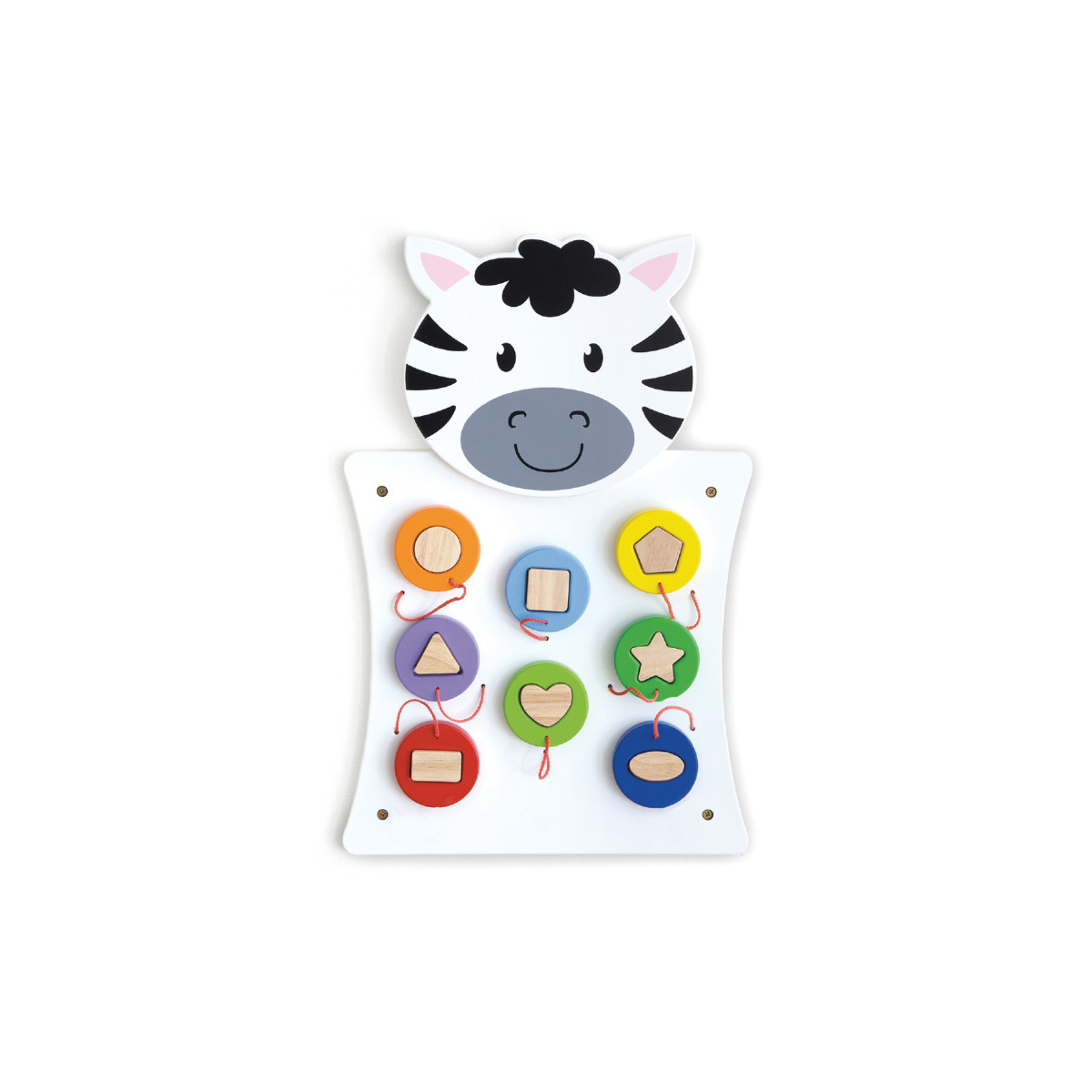 LEARN THROUGH PLAY -- The Zebra Activity Wall Panel helps to build motor skills, hand-eye coordination, descriptive language, counting, color, shape, space and reasoning skills.