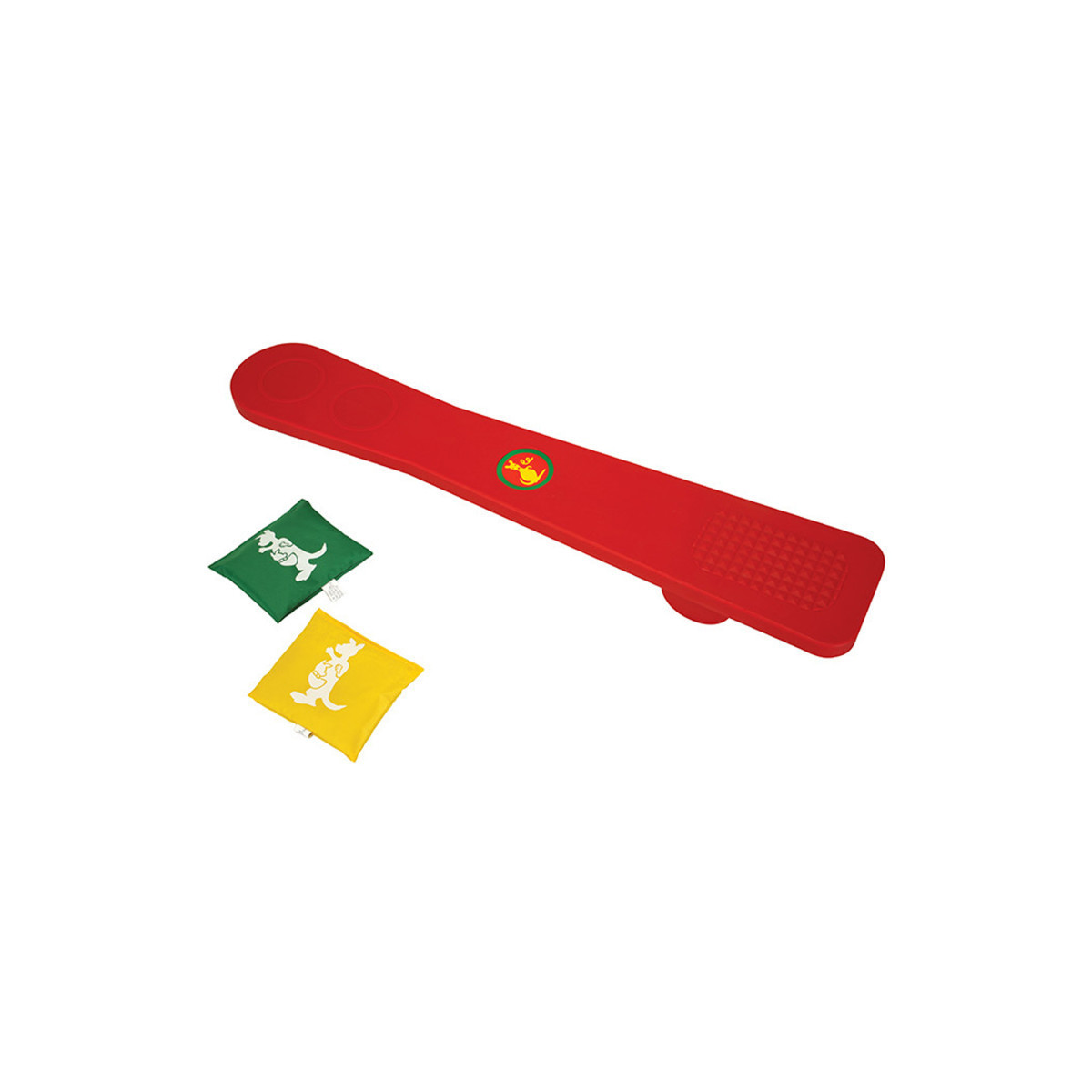 Place a beanbag on one end of the 27.67" inclined plane and stomp on the other end, your beanbag sails in the air for you to catch
