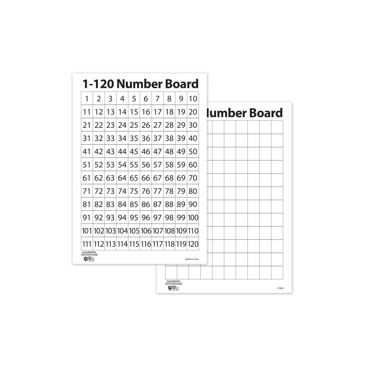 These durable and versatile boards are excellent for teaching coordinate grid concepts, graphing, arrays, area, perimeter and much more! 9" x 12" dry erase board features numbers 1-120 on one side and blank grid on the reverse side. Set of 10.