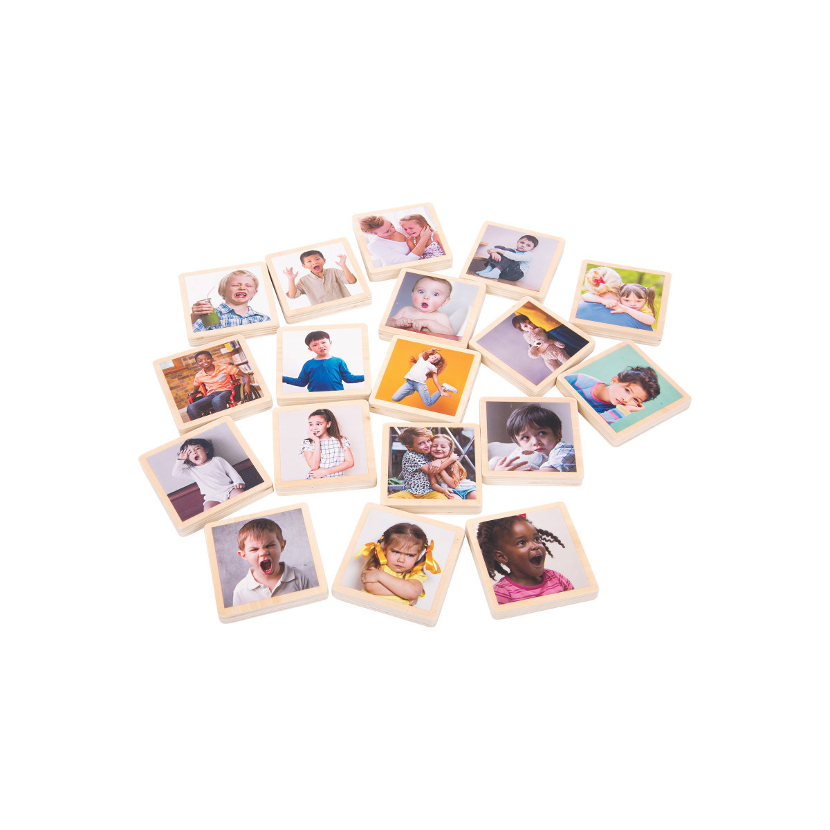 This set includes 18 basswood ply tiles that contain real photos of different expressions on children.