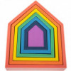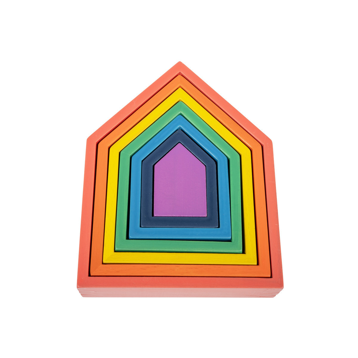 - NESTING TOY -- This wooden set features 7 nesting houses in the 7 colors of the rainbow. The inner block is a solid 3D shape. Explore colors, shapes, sizes and scales through open-ended play!