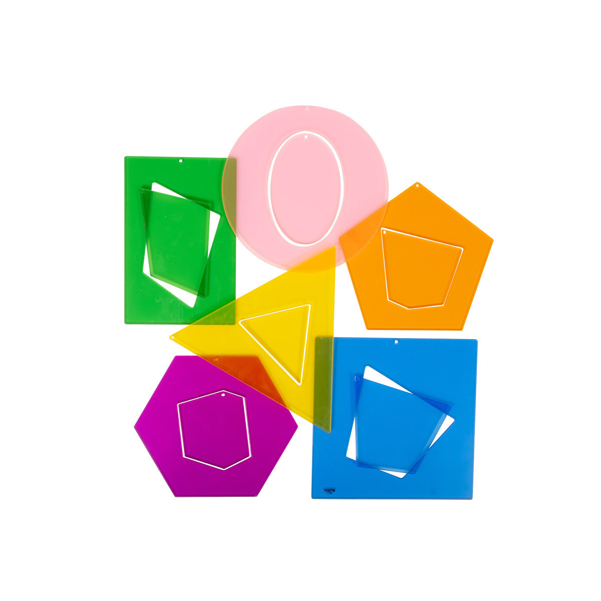 Explore the relationship between regular and irregular shapes with an added sensory element. This set features 12 translucent shapes in 6 bright colors. Match puzzle pieces by their color and their attributes. Pair these shapes with a light source to help kids investigate color mixing, shadows, patterns and shape attributes. These manipulatives are also great as templates for drawing and coloring or as stencils for shape matching. Made of durable acrylic, these shapes are designed to withstand years of classroom or home use. Add these colorful, 2D shapes to preschool and kindergarten classrooms, playrooms, or sensory stations. For ages 3+. Size of the square: 6"H x 6"W.