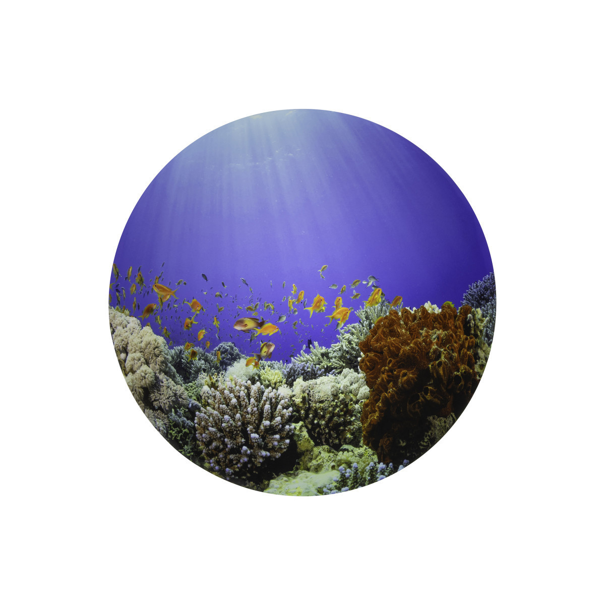 This playmat features a detailed image of an imaginary ocean landscape with a diverse coral reef and tropical fish. Give children a stimulating background for open-ended, sensory exploration. Create small worlds and build colorful, underwater scenes. Pair this semi-translucent playmat with a light source to bring the contents of the image to life. It fits perfectly on our Sensory Mood Light Table and our Sensory Mood Discovery Table. Made from durable polyester, this mat will withstand years of use. It's a perfect addition to sensory bins, light table accessories and calming corner items. Or, bring the play mat to the floor for tummy time activities. Keep infants and toddlers engaged without the screens. Suitable for all ages. Size of mat: 24.6" dia.