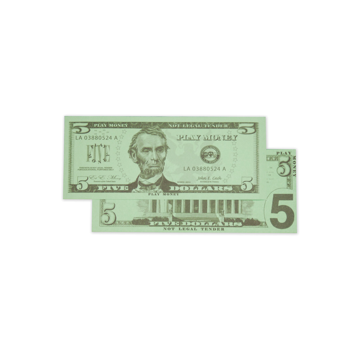 100 $5 DOLLAR BILLS INCLUDED -- This set of five dollar play bills is great for solitary or group play and an ideal resource for the home, center, classroom or playroom.