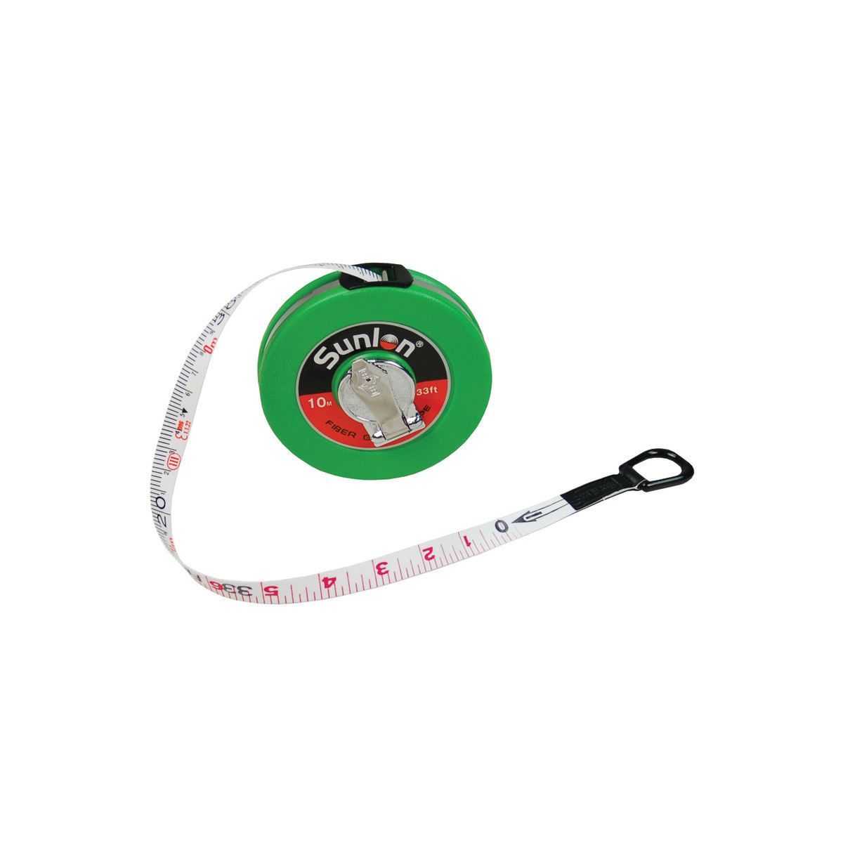 Closed reel design with hand crank. Tape measures 33ft/10m