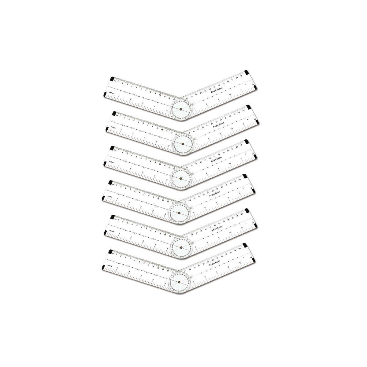 Perfect for measuring and constructing all types of angles, along with degrees and lengths of sides, this adjustable transparent ruler is marked in inches and centimeters and has a 0-360 degree scale. Sold as a pack of 6 rulers.