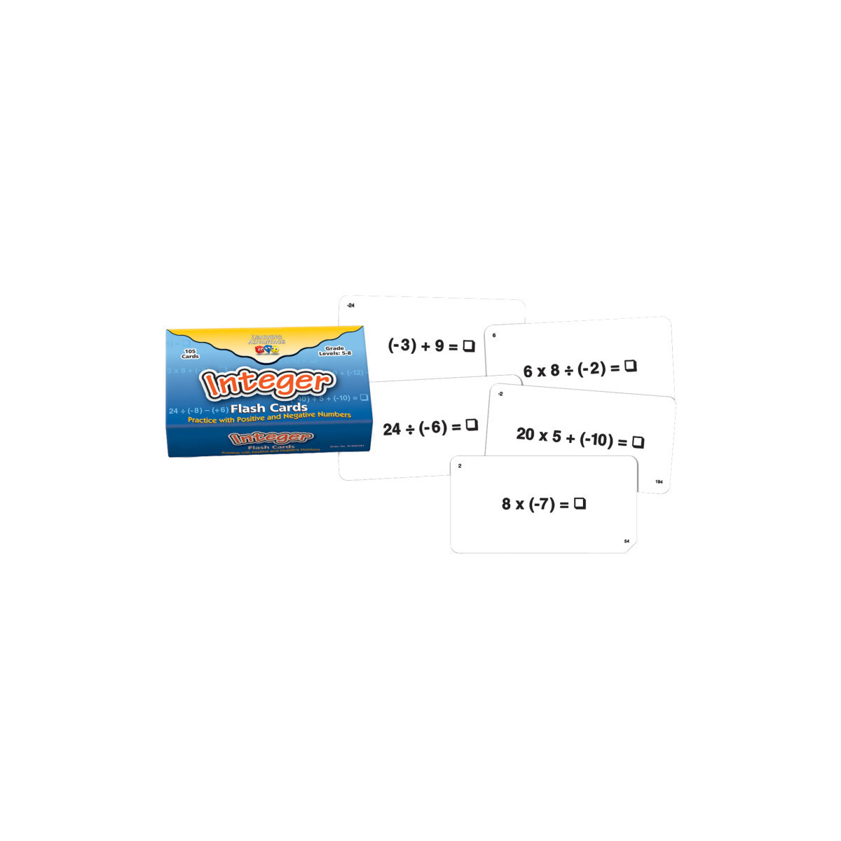 105 double-sided, easy to read, flash card deck which features two levels of difficulty and practice for solving problems with positive and negative numbers. Cards address problems using multiplication, division, addition, and subtraction. Level 1 problems consist of equations using two numbers and Level 2 problems use 3 or more numbers. Deck includes: 105 flash cards, instructional guide, games, and extension activities.