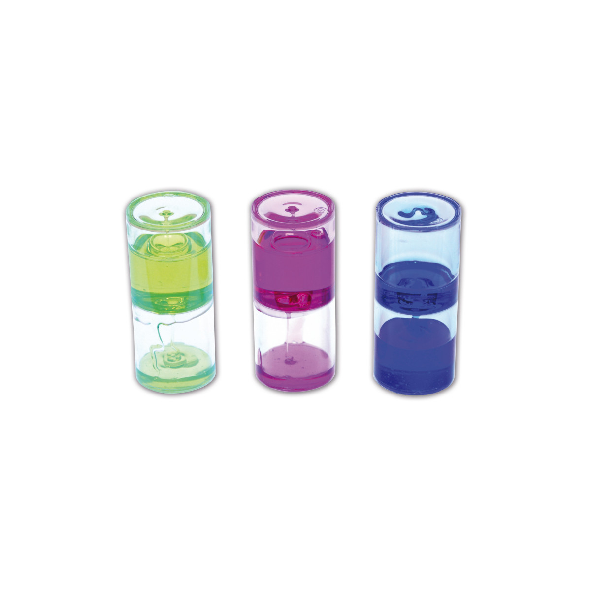Our highly attractive crystal clear sensory liquid sets contain colorful oil and water in a range of designs.