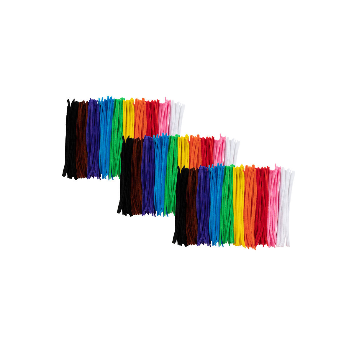 Each pack includes 324 chenille stems in assorted colors. Perfect for craft projects! Size: 12"L. Sold as 3 packs for a total of 972 chenille stems.