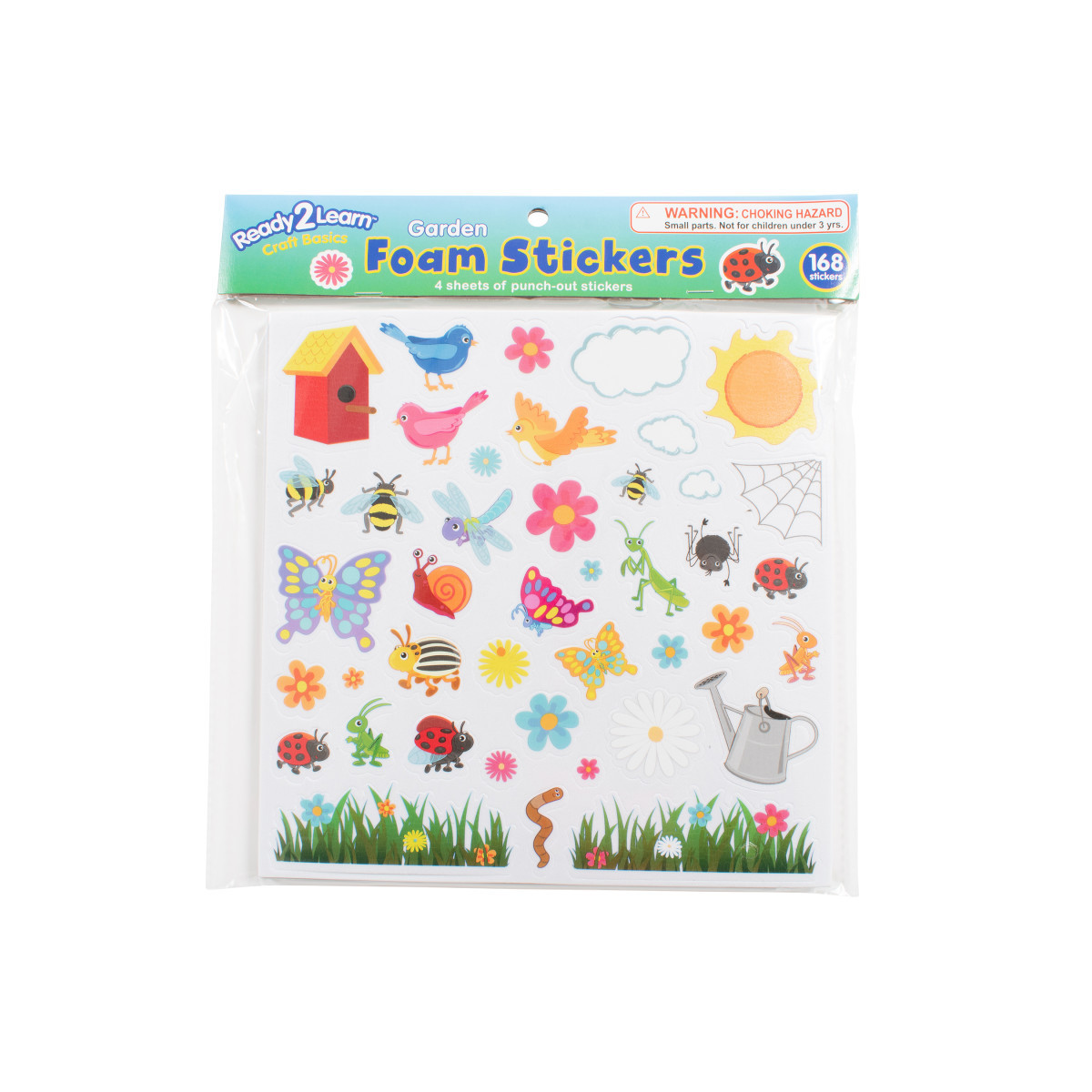 168 GARDEN STICKERS -- This garden-themed sticker pack includes 4 foam sheets, each with 42 punch-out stickers in 18 different images. Decorate with flowers, bees, butterflies and more!