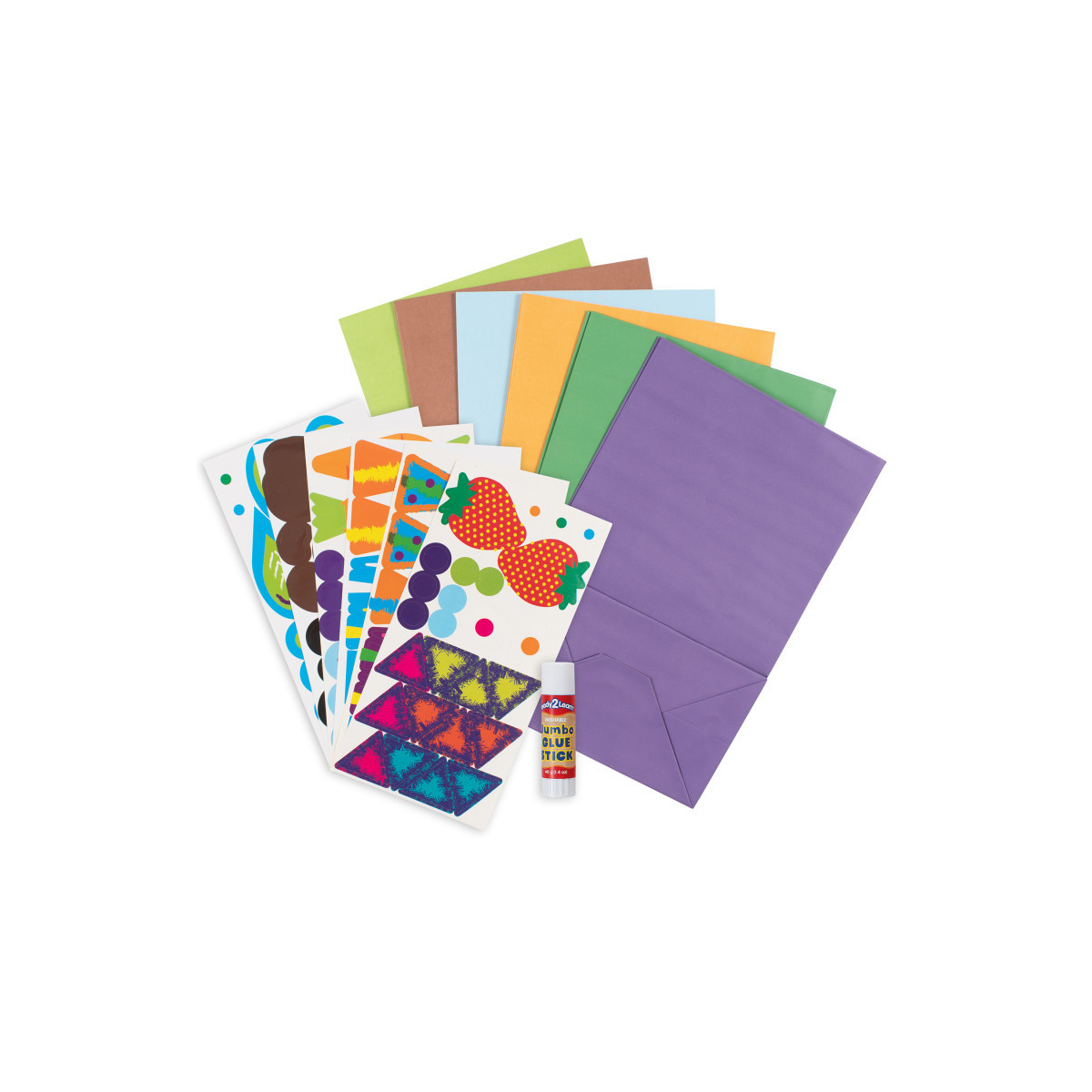 Create 6 different pets with this 238-piece paper bag craft kit! It includes everything needed to make a hedgehog, rabbit, dog, bird, cat and chameleon. Simply glue the pet features on the bag, decorate with stickers and bring your puppet to life! Children will explore creative expression and imagine new stories with these adorable puppet pets. Strengthen hand muscles and dexterity as children decorate and move the puppets. Puppets also enable children to explore different emotions such as happiness, sadness and empathy. Includes 6 paper bags, 88 die-cut shapes, 6 sheets of stickers, 1 glue stick and instructions. Size of paper bags: 9.25"L x 6"W.