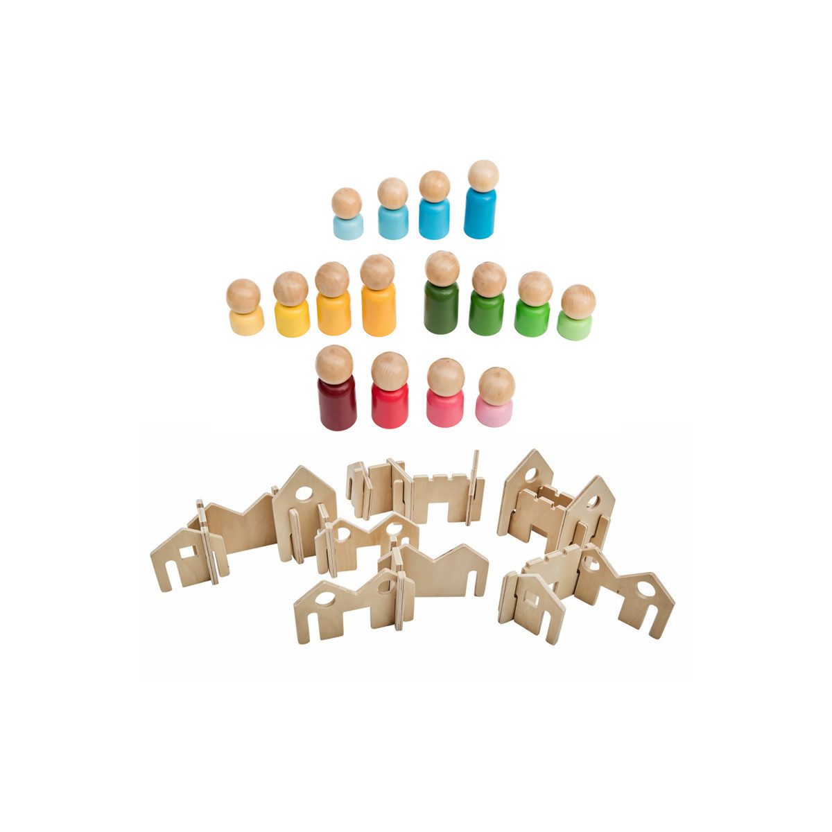The Rainbow Families Diversity Kit includes the 16-piece Rainbow Families set, and the 22-piece Little Happy Architect Wooden Blocks set.