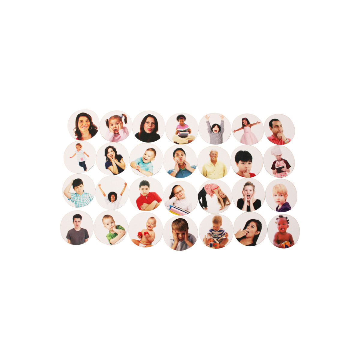 INCLUDES 28 DIFFERENT EMOTIONS -- This memory game includes 56 disks (28 matching pairs) of real people showing different emotions across various ages, genders and backgrounds.