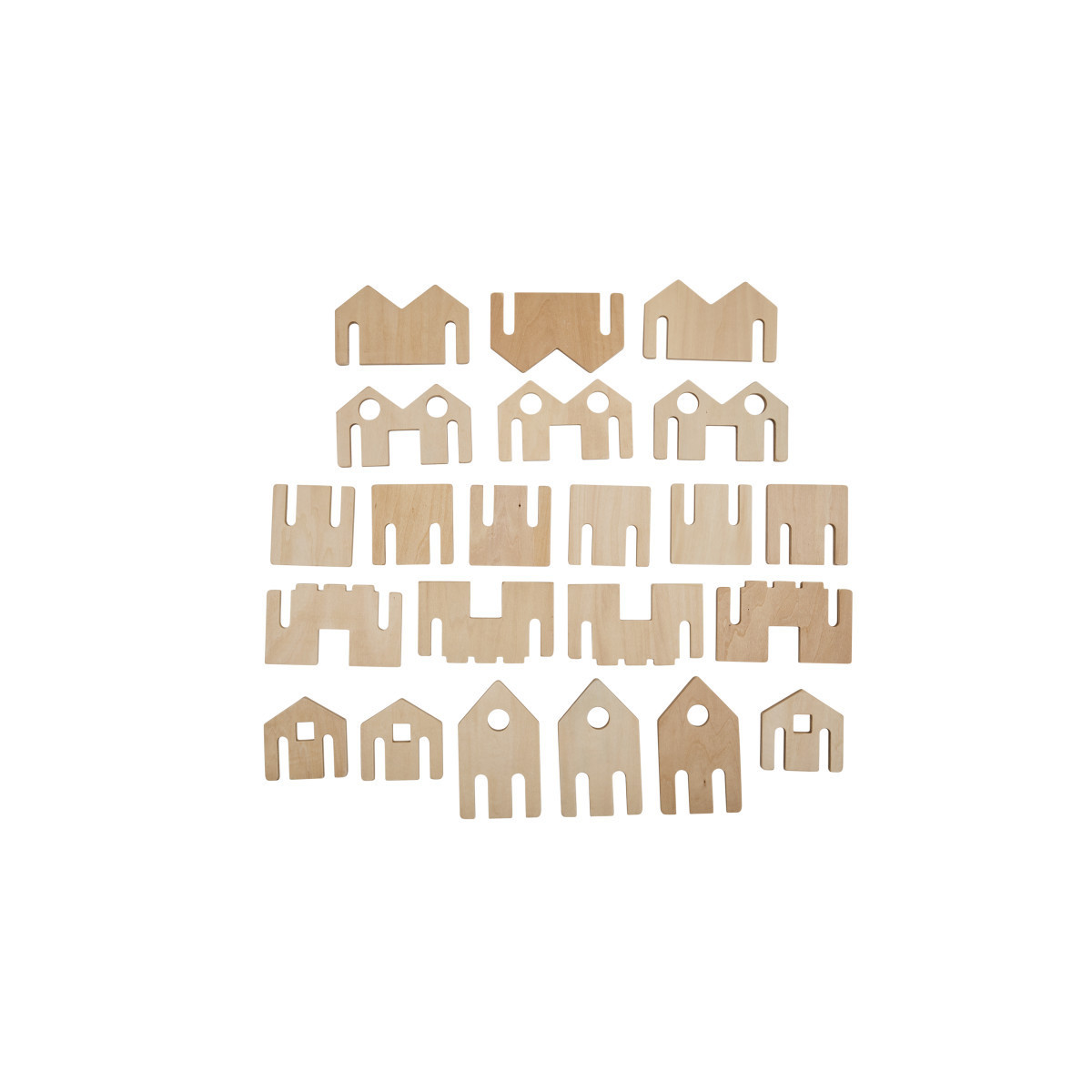 INCLUDES 22 NATURAL PIECES -- This wooden village-themed set features 22 beautiful, open-ended pieces in 6 different shapes for years of imaginative playtime!