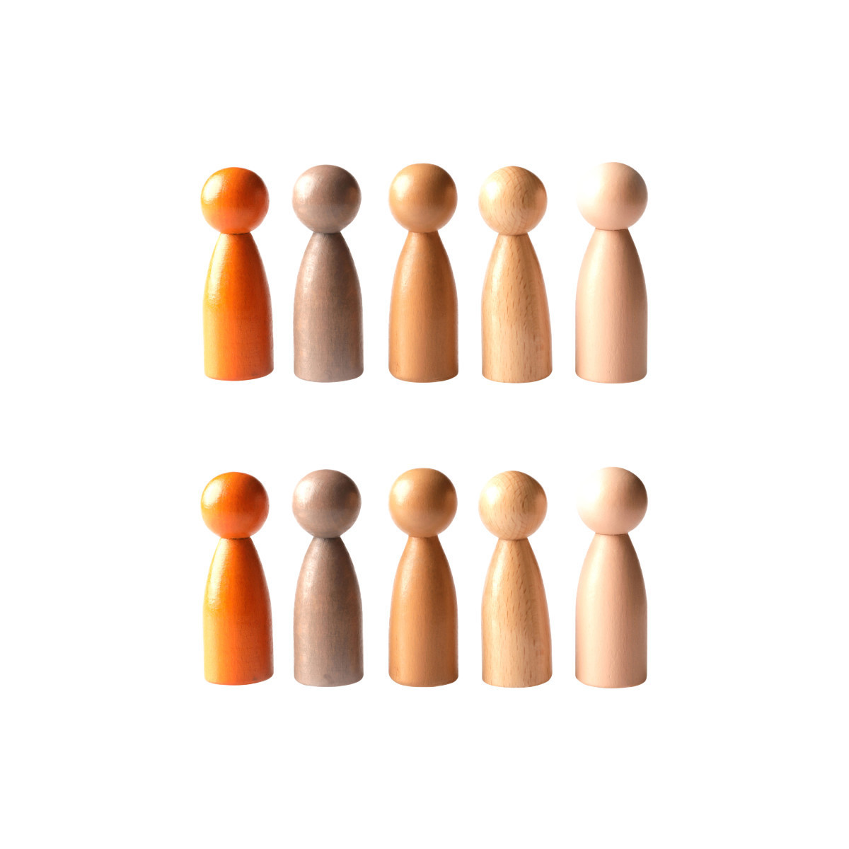 Teach children about diversity and inclusion through play using the simplicity of the different shades of these peg people. This set is the perfect way to demonstrate to children that while we may look different on the outside we are all the same, living together in this world. An early learning environment must-have. 10 pieces in each set. Made with FSC Beech wood. Suitable for children one year and over. Size: 3"H x 1" dia.