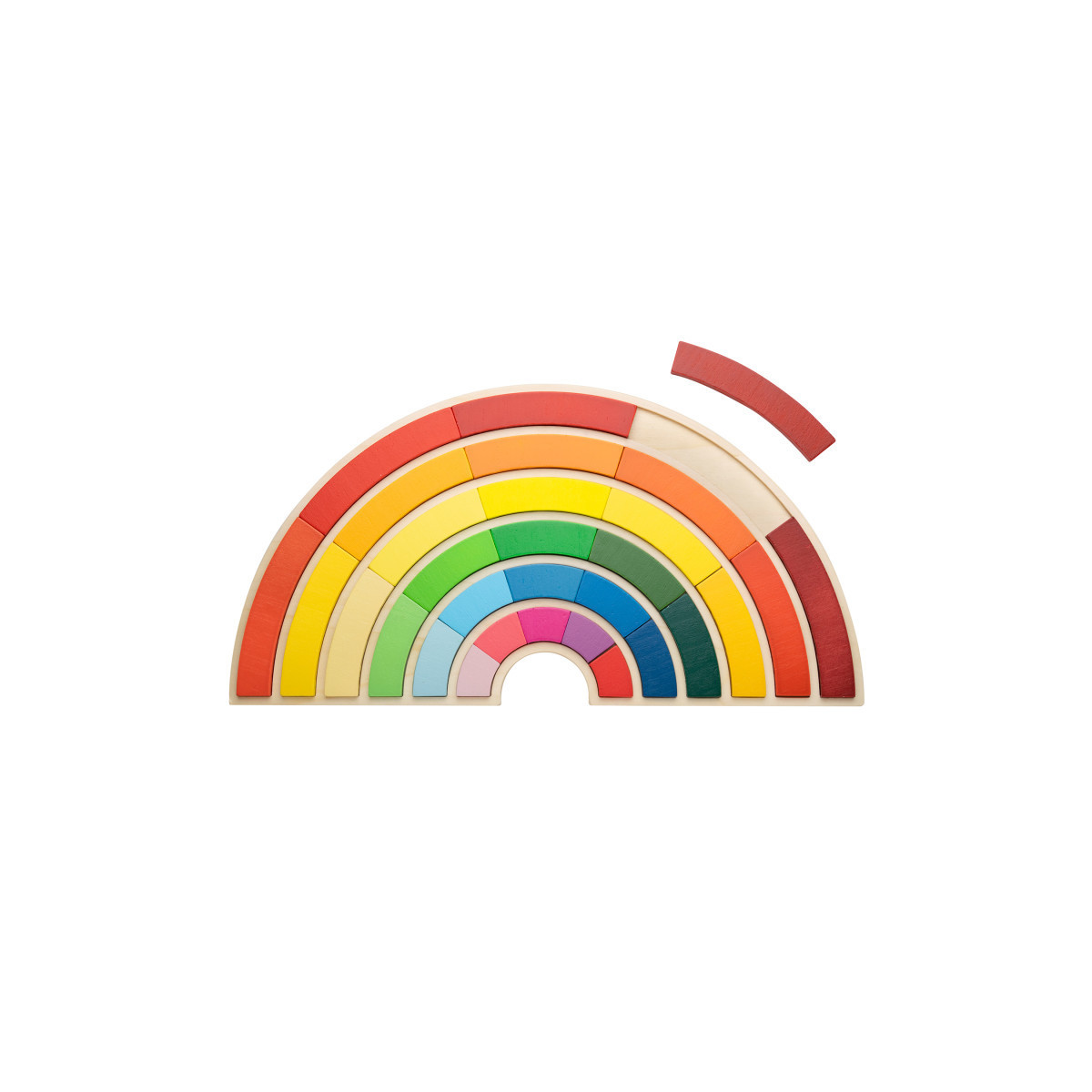 Develop early problem-solving, concentration, spatial reasoning, color recognition and fine motor skills as children fit the colorful pieces into the rainbow-shaped baseboard. Or, stack the pieces vertically.