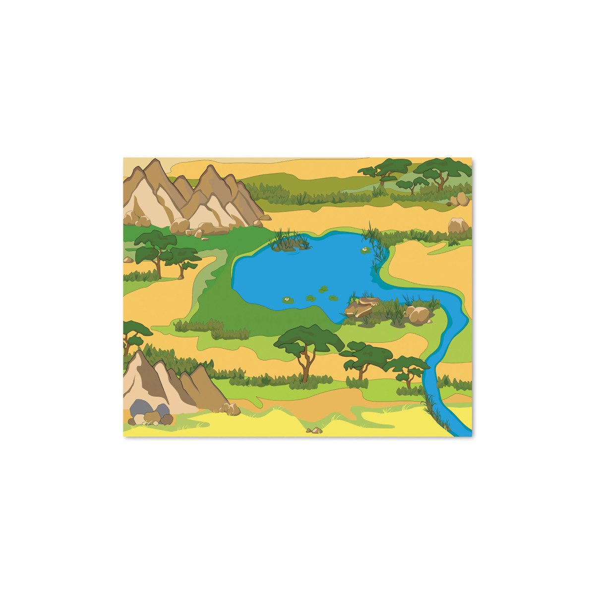This non-slip, rubber and micro suede mat features a wilderness scene printed on it. Use it to create an imaginative area in playrooms, classrooms and centers. Place blocks, figures and other toys on it for role-play and storytelling. Or, incorporate this mat into lessons about plants, animals and nature. Its a fantastic addition to any imaginative play scene. The large size provides plenty of room for individual or group play. Made from high quality materials, this mat is designed to last for years of home or classroom use. For ages 12m+. Size: 49.2"L x 39.4"W.