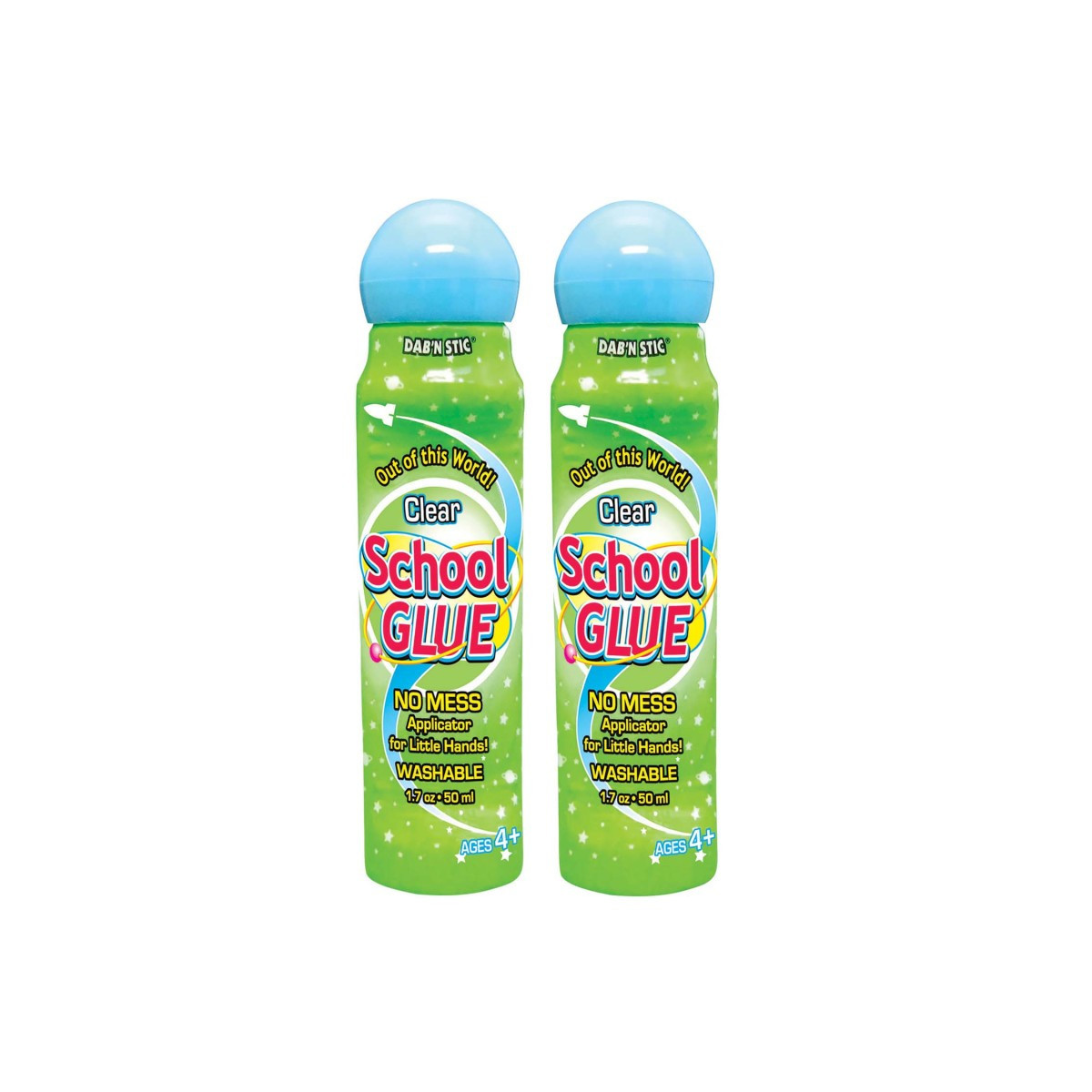 The Dab 'N Stick School Glue is an ergonomically designed bottle and small applicator that is perfect for children. Easy to use with its no mess, no leak applicator. Fast drying, non-wrinkling and washable. Non-toxic. Each bottles contains 1.7oz (50ml) of glue with a 24mm tip. Each pack includes 6 bottles of glue. Sold as 2 packs for a total of 12 bottles of glue.