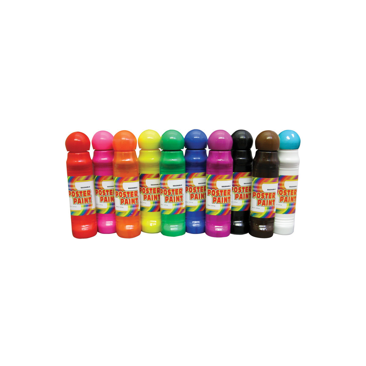 The Crafty Dab 1.62 oz. Poster Paint comes in 10 assorted colors packed in ergonomic shaped bottles for easy hold and control. Bring home the Crafty Dab Poster Paints for a myriad of art projects. Foam applicators make the paint easy to apply. They are quick to dry and easy to paint directly. Designed with special spring mechanism, these poster paints do not leak or spill during application. Non-toxic paints for kids. Washable paints easily clean up from fabrics and skin.