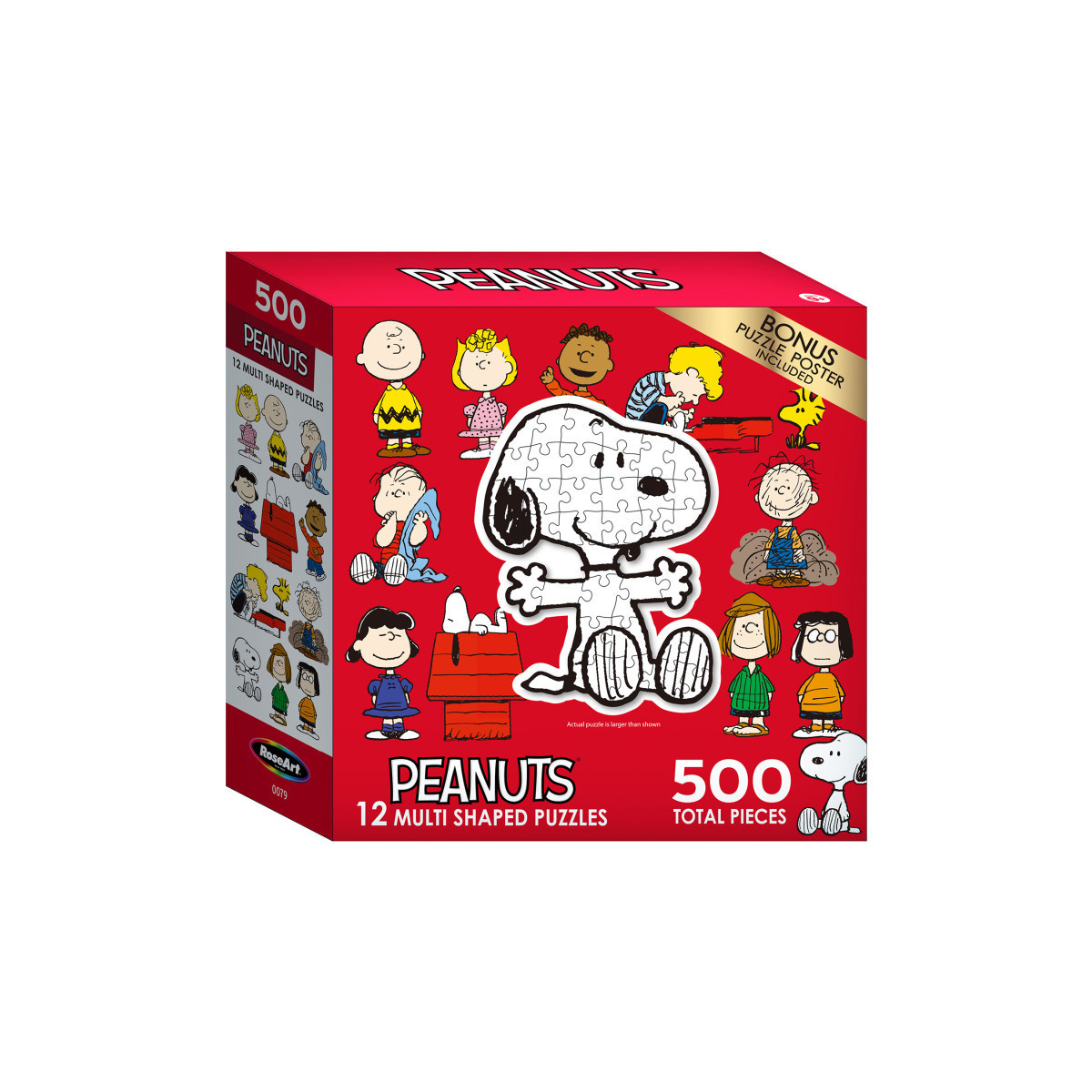 12 Mini Shaped Puzzles: Enjoy assembling 12 Peanuts-themed puzzles with a total of 500 pieces.