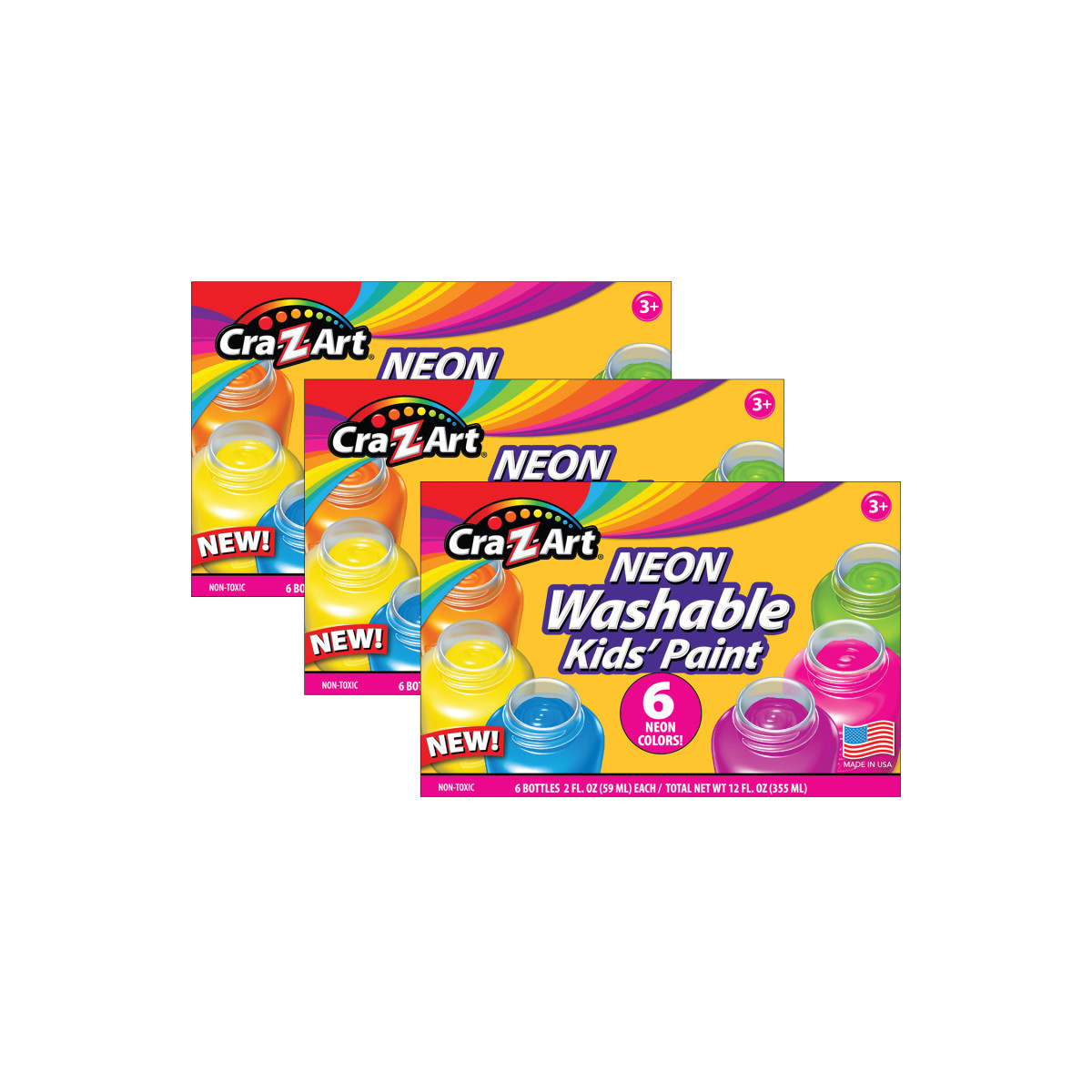 Cra-Z-Art's neon washable paint is perfect for all your crafting needs. Each color is smooth and glides across paper, craft wood, posters, and more! Each set includes 6 neon colors for you to paint with. Sold as 3 sets for a total of 18 paints.