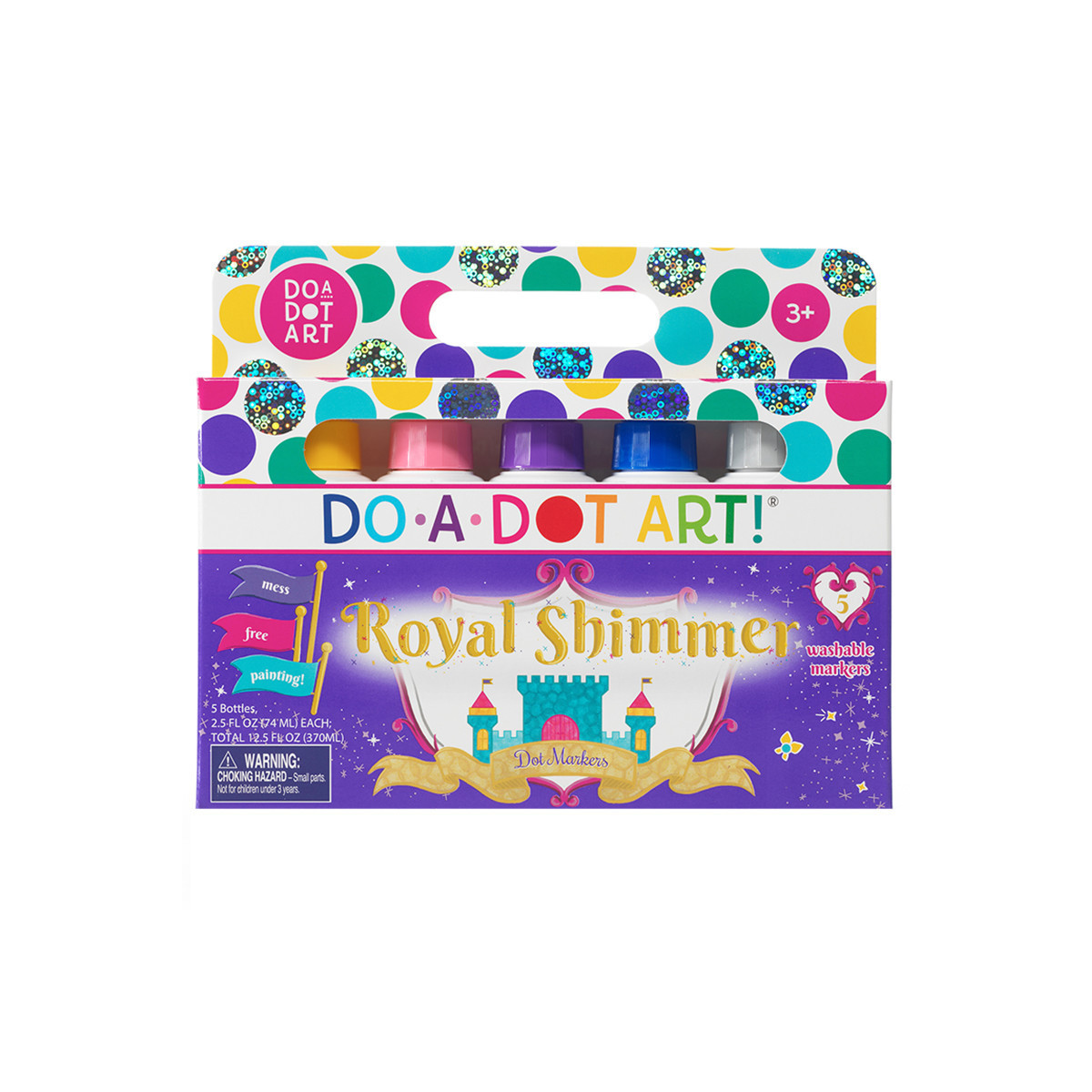 Do-A-Dot Art, Shimmers Washable, 5 Pack Sponge Tip Applicator with Shimmer Colors Paint. Add shimmer and shine to all of your art projects with Do A Dot Art! Shimmer markers. Whether it's a sparkling crown or a shimmering sword, this set of dot markers is sure to dazzle up any art activity. Do A Dot Art! markers are washable and super easy to use, with no cups, no brush, no mess, parents and teachers can rest easy knowing their kids can have a blast creating fun art without all of the mess! The water based ink dries quickly and allows kids to mix, blend, and layer colors. Just twist off the cap and let these shimmer markers shine!