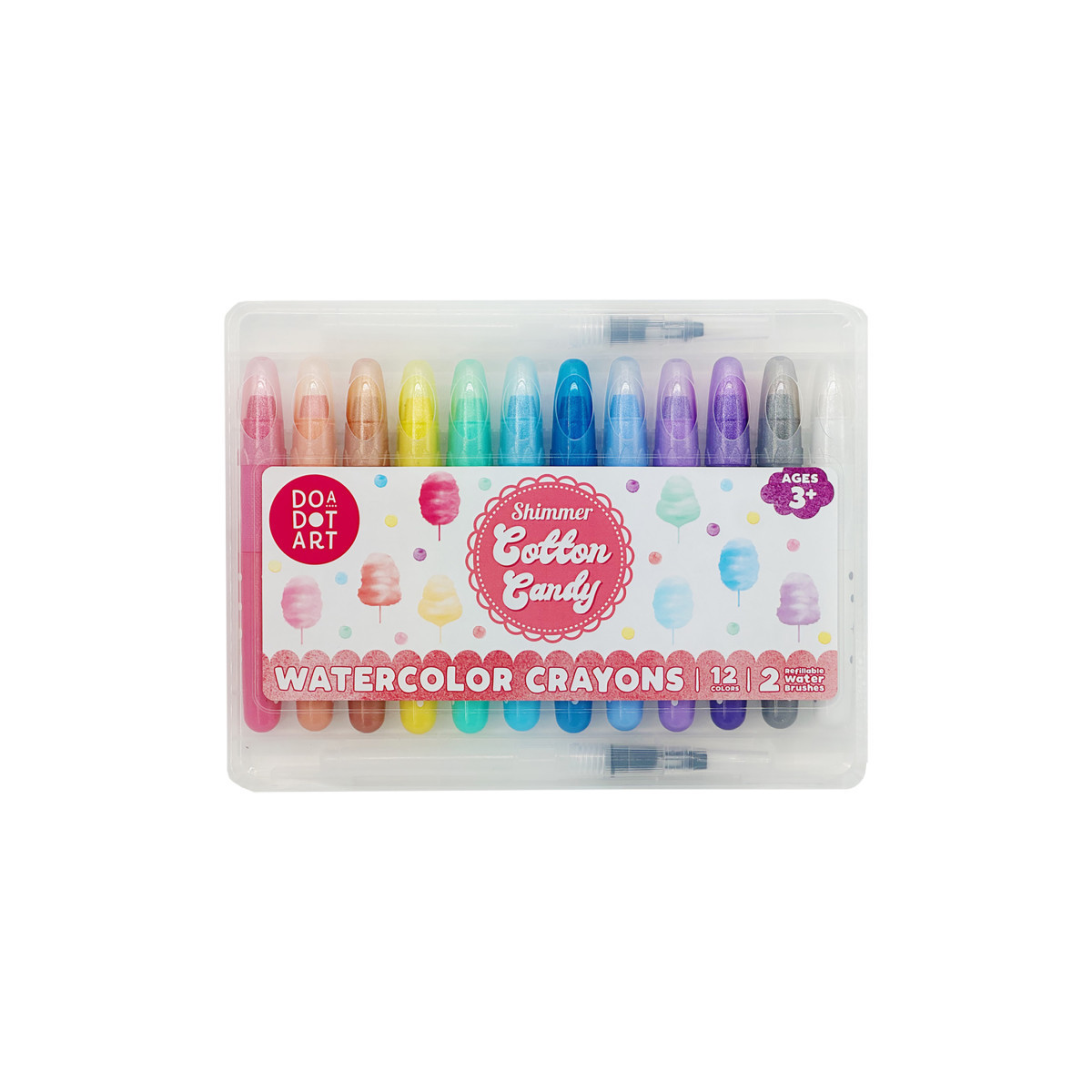 Bring sweetness to art time with our Cotton Candy Watercolor Crayon Set! This delightful set features 12 soft shimmering sparkle pastel watercolor crayons and two refillable water brushes, perfect for inspiring creativity in kids.