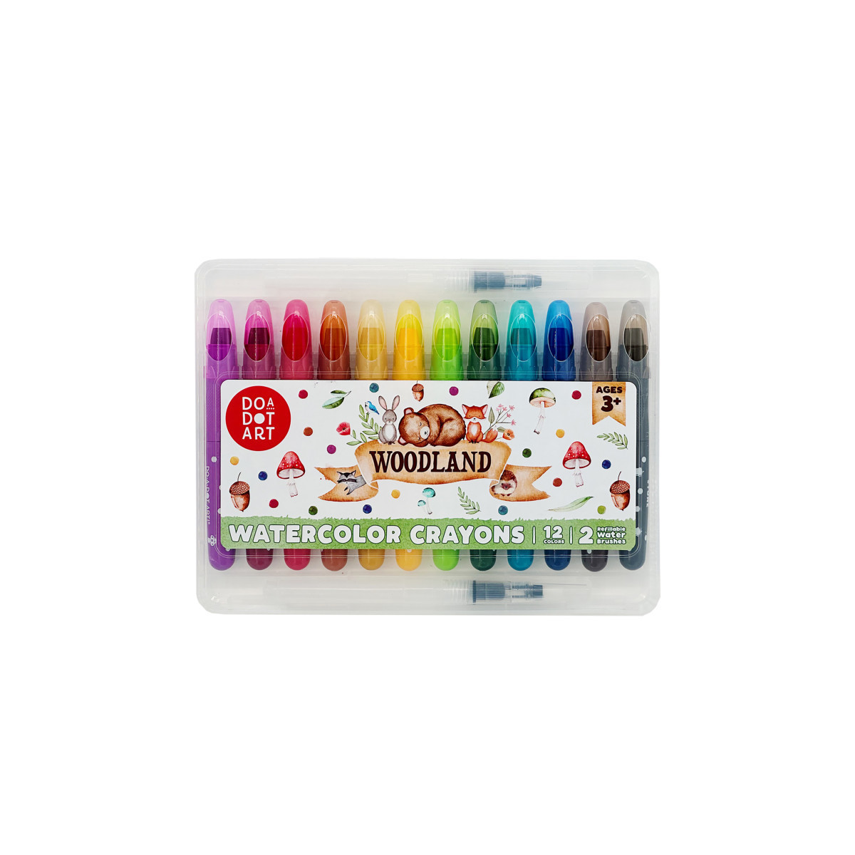 Bring your child’s creativity to life with our Woodland Watercolor Crayon Set for Kids! Each set includes 12 vibrant watercolor crayons and two refillable water brushes, designed to make painting fun, mess-free, and easy for little hands.