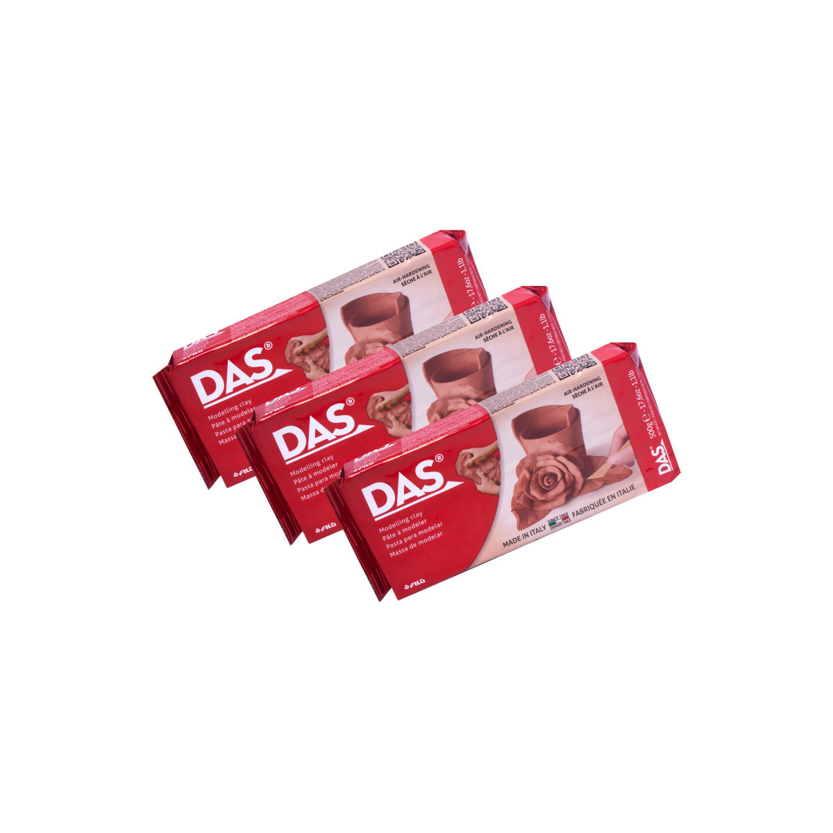 An iconic Italian brand since 1963, DAS Clay has remained committed to providing versatile, inimitable, and easy to use products for artists, hobbyists and students of all ages. Using an array of natural minerals and materials to make reliable air-dry and oven-baked clay along with a variety of artists’ sculpting and pottery tools, our products open a world of clay cutting and shaping opportunities to customize and add embellishments to your artwork. With DAS, there has never been a more safe and convenient way to work on your projects. DAS air dry clay requires no oven baking, and it seamlessly adheres to many materials such as glass, wood, plastic and more, to create models and figures. Additionally, the malleable molding clay can also be molded into an array of solid, free-form objects and shapes for a variety of uses and decorations. Pair with the DAS metal cutters and the hardwood modelling tools for fast and simple shaping techniques and use the DAS professional rolling pin with adjustable rings to flatten your air dry clay to a uniform 2.5mm, 3.5mm or 5mm wide slab for easier handling. Once this sculpting clay for adults and kids has been exposed to air for 24 hours and completely dried, the porous, stone-like surface can be decorated with a range of mediums including art markers, acrylic paint, stains and tempera. Finish off your crafted self hardening clay project with the VerniDAS professional varnish for a glass-like shine. This air drying clay is perfectly suited for home, studio and classroom use as it is non-staining and washes from hands and fabrics easily. DAS created the foundation of superior art supplies with their first clay, and have continued to offer reliable, premium art supplies designed to give you the ultimate creative experience. Creating lasting and permanent artwork has been made simple with the help of DAS art supplies. Sold as a pack of 3 blocks of clay.