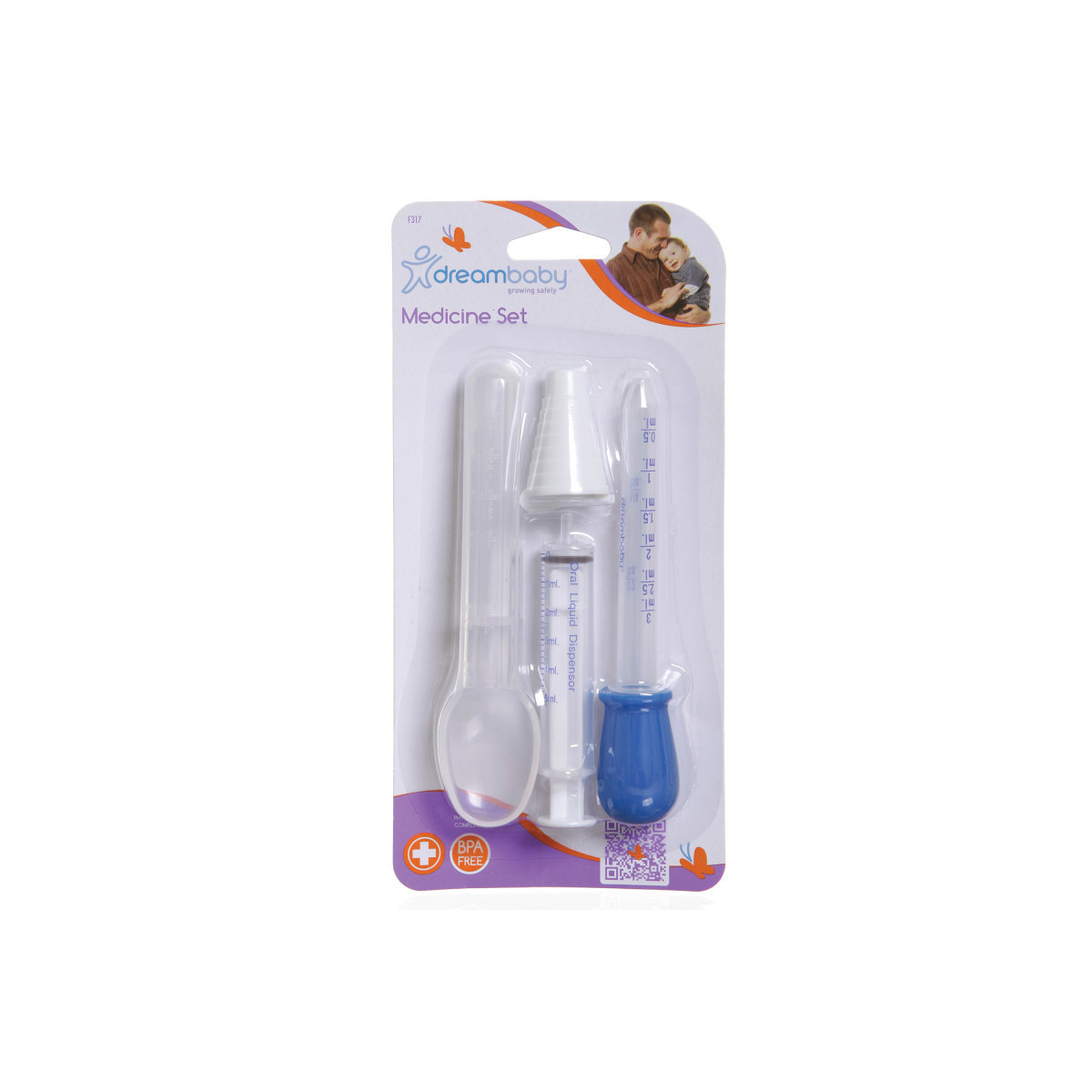 Dreambaby® Medicine Sets contains a medicine spoon with dropper, medicine syringe, and medicine dropper - everything you need for those stressful times when your little ones are unwell, injured or teething. Dreambaby® Medicine Sets are your one stop shop for everything you need to make it easy to administer medicine to children.