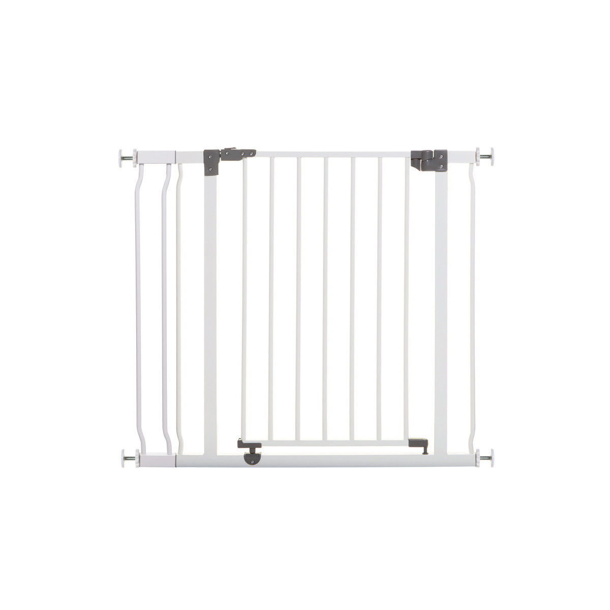 Dreambaby® Liberty Auto-Close Metal Baby Safety Gate is a fantastic addition to every childproof home. With its sleek metal design, one handed operation, and double locking feature you can feel confident that your child is safer. Versatile indeed, Liberty gates are suitable for doorways and hallways sized 29.5-36.5" wide and are 30" tall. Using optional extensions, sold separately, they can fit openings up to 54". For those times when your hands are full while bringing in the groceries or toting around the laundry basket, the Stay-Open feature is sure to become your best friend. Just swing the door in the Stay-Open position and it will stay wide open till you choose to close it. For all other times, the Auto-Close feature gives you one less thing to worry about. Dreambaby® Liberty gates are pressure-mounted which means fuss free installation perfect for most homes whether houses or apartments (included hardware mounts required for stairway use). Made of strong, high-quality materials it's great for pets too! For security, all mounting cups MUST be screwed into place regardless of where it is to be used.
