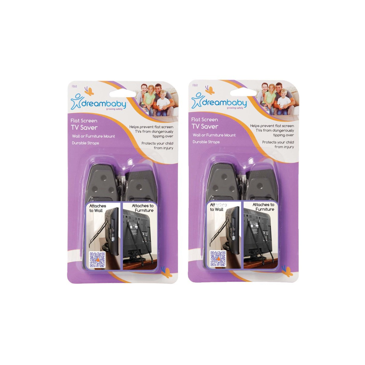 Dreambaby® Flat Screen TV Savers prevent potentially serious accidents by anchoring the television to the wall or furniture with adjustable, heavy-duty straps. Dreambaby® Flat Screen TV Savers were specifically designed to help prevent injuries that can occur when curious toddlers accidentally push over a heavy television. Each pack includes 2 straps. Sold as 2 packs for a total of 4 straps.