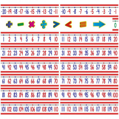 Set of 10 double-sided number lines featuring 0 –10 on one side and blank marks on reverse. Convenient dry-erase surface. Number lines measure 13" x 4". Grades K-2.
