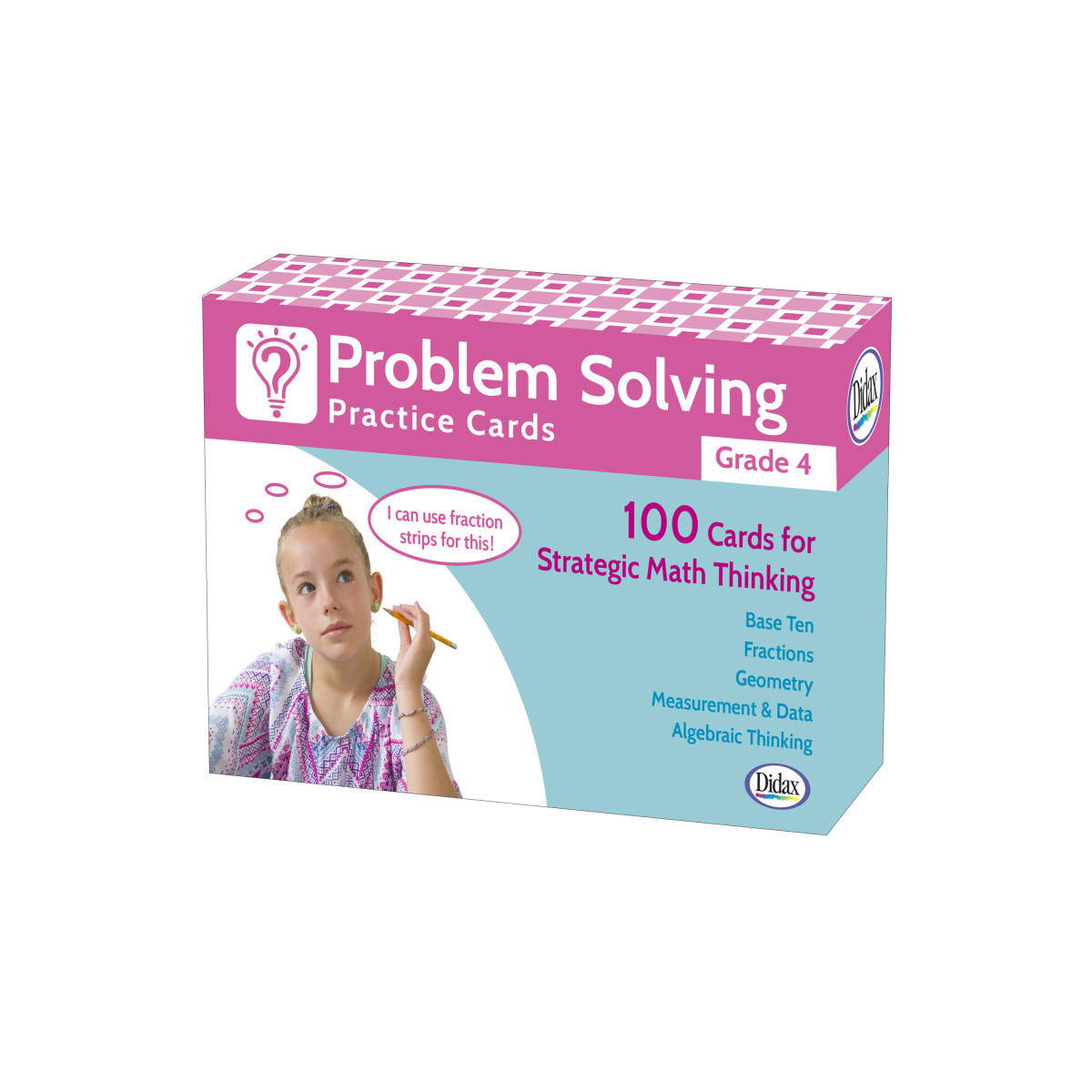 Built for rigor and carefully aligned to the standards, these activity cards build student confidence in problem solving as they progress from strategies and procedures to a deep understanding of math concepts. Featuring classroom-tested problems, each card also suggests a specific problem solving strategy to be used such as drawing a picture, using a model or solving an equation. These cards will improve student's abilities as they learn to effectively use a variety of problem-solving strategies. This set contains 100 cards—20 for each of the five domains. Includes teacher activity guide. Grade 4.