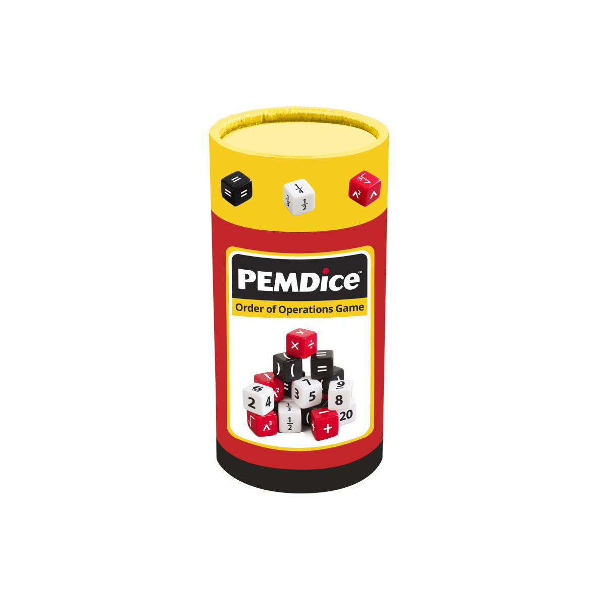 Roll the PEMDice and create equations—just be sure they're correct and follow the mathematical order or operations! Earn points by creating equations that use the most dice. These unique dice feature numbers, fractions, operations, parentheses and equal signs. Game includes 30 unique color-coded PEMDice, activity guide with a variety of game options and shaker. For two students. Grades 5-12.