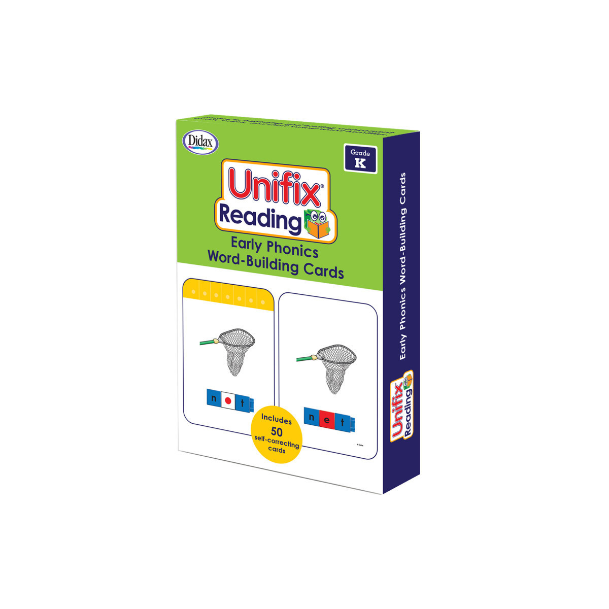 Build CVC words with Unifix Letter Cubes. Set includes 50 two-sided, illustrated cards to practice beginning and ending sounds and short vowel (CVC) word families. Kindergarten.
