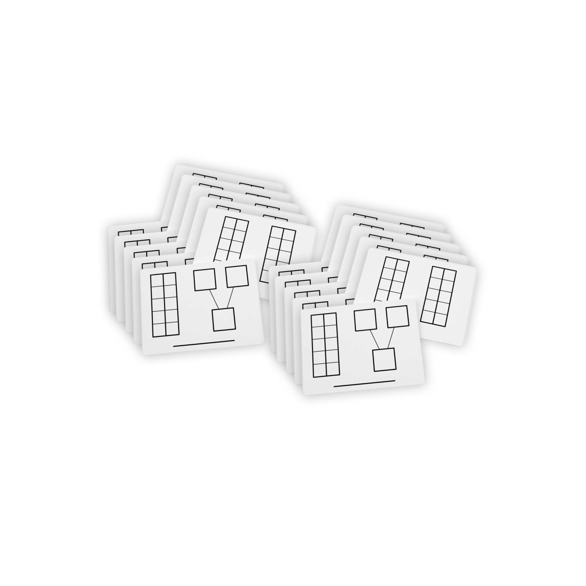 Tough, flexible plastic mat has ten frame and number bond outline on one side and two ten frames on reverse. For use with dry-erase markers. Mats measure 9" x 12". Each pack has 10 mats. Sold as a 2 packs for 20 mats total.