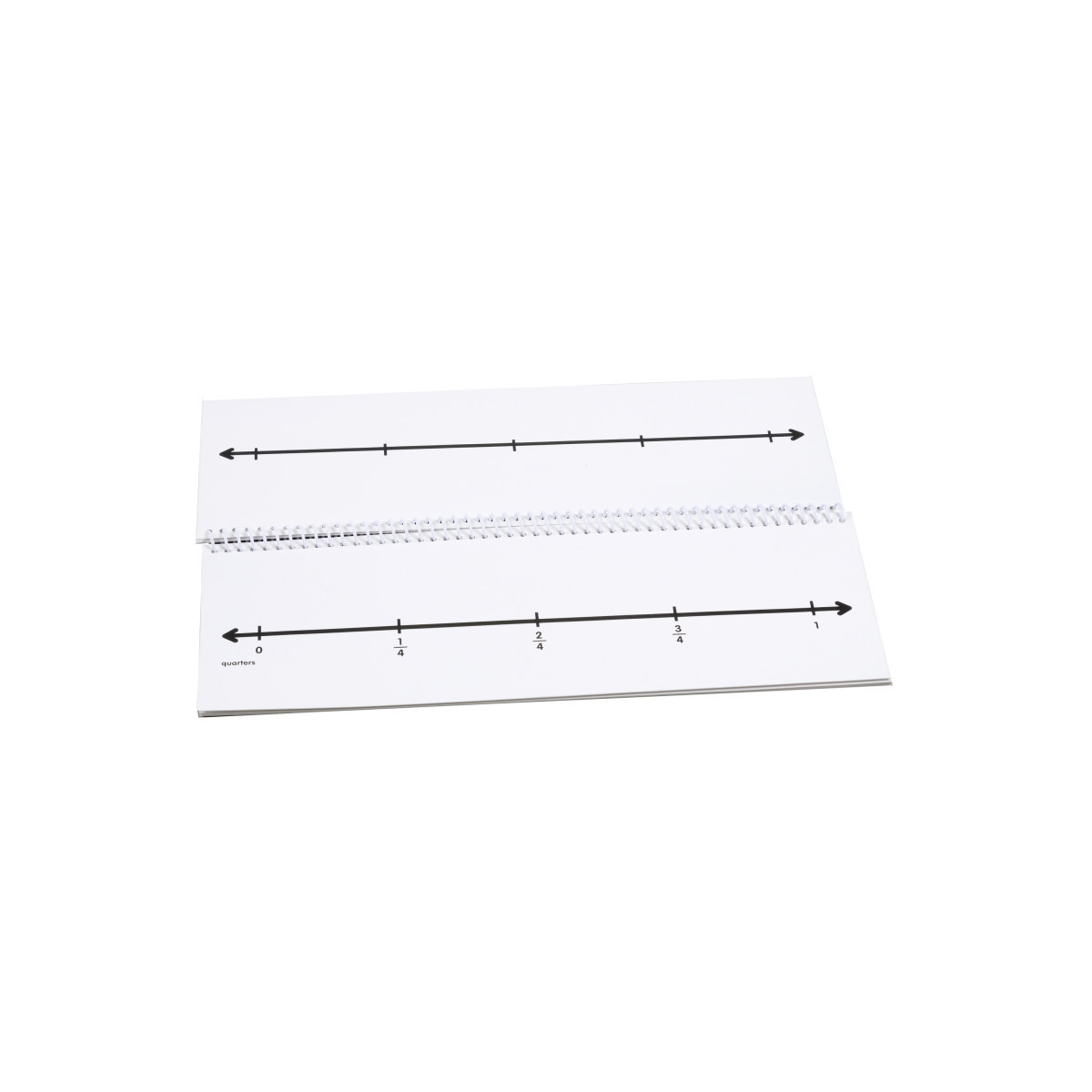 Your students will be "flipping" over fractions with this versatile write-on/wipe-off book. Students can use the 18 different fraction number lines featured in this book to solve a wide variety of fraction, decimal, and percentage problems. Durable spiral-bound book is 4" x 12" and includes lines featuring thirds, quarters, fifths, eighths, tenths, twelfths, sixteenths, percents, as well as blank lines (single and dual). 20 pages.