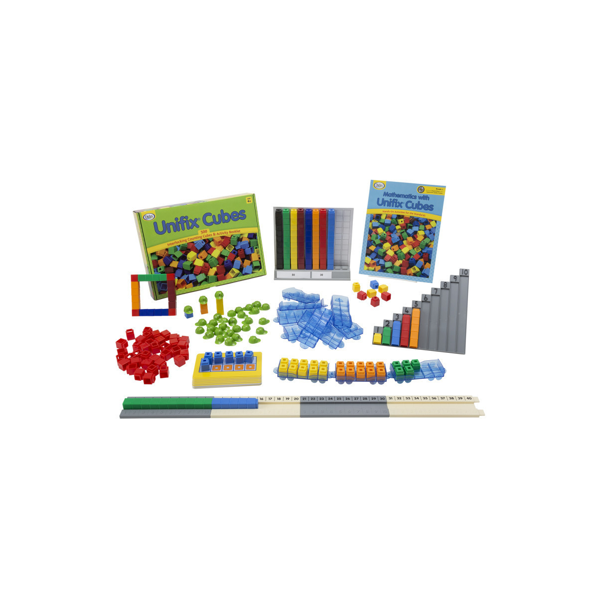 This kit helps students by including all the manipulatives you need to teach counting, operations, and beginning. Kit includes Mathematics with Unifix Cubes, Grade 1; Unifix Cubes, set of 500; Unifix 1-10 Stair, 2; Unifix 1-120 Number Line; Ten-Frame Trains, set of 50; Unifix Cubes Ten-Frame Cards, 2 sets; Unifix Cubes Hundred Base, 2; Unifix Number Hats, set of 30; Unifix Corner Cubes, set of 40.