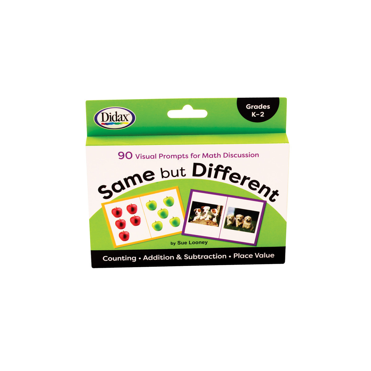 These colorful cards will inspire dynamic mathematical conversations. Using photographs, illustrations, equations and more each card features a content-rich image comparison. Ask students to explore the math by asking, "What is the same? What is different?" about the two images. The ensuing mathematical discussions allow conceptual understanding and connections between mathematical ideas. Display the cards for whole-class instruction, set them up in centers or use for small- group instruction. Each set includes a total of 92 cards; 30 cards in each of the three domains (Counting, Addition & Subtraction, and Place Value) as well as two blank cards to create your own images. Each card measures 4" x 6".