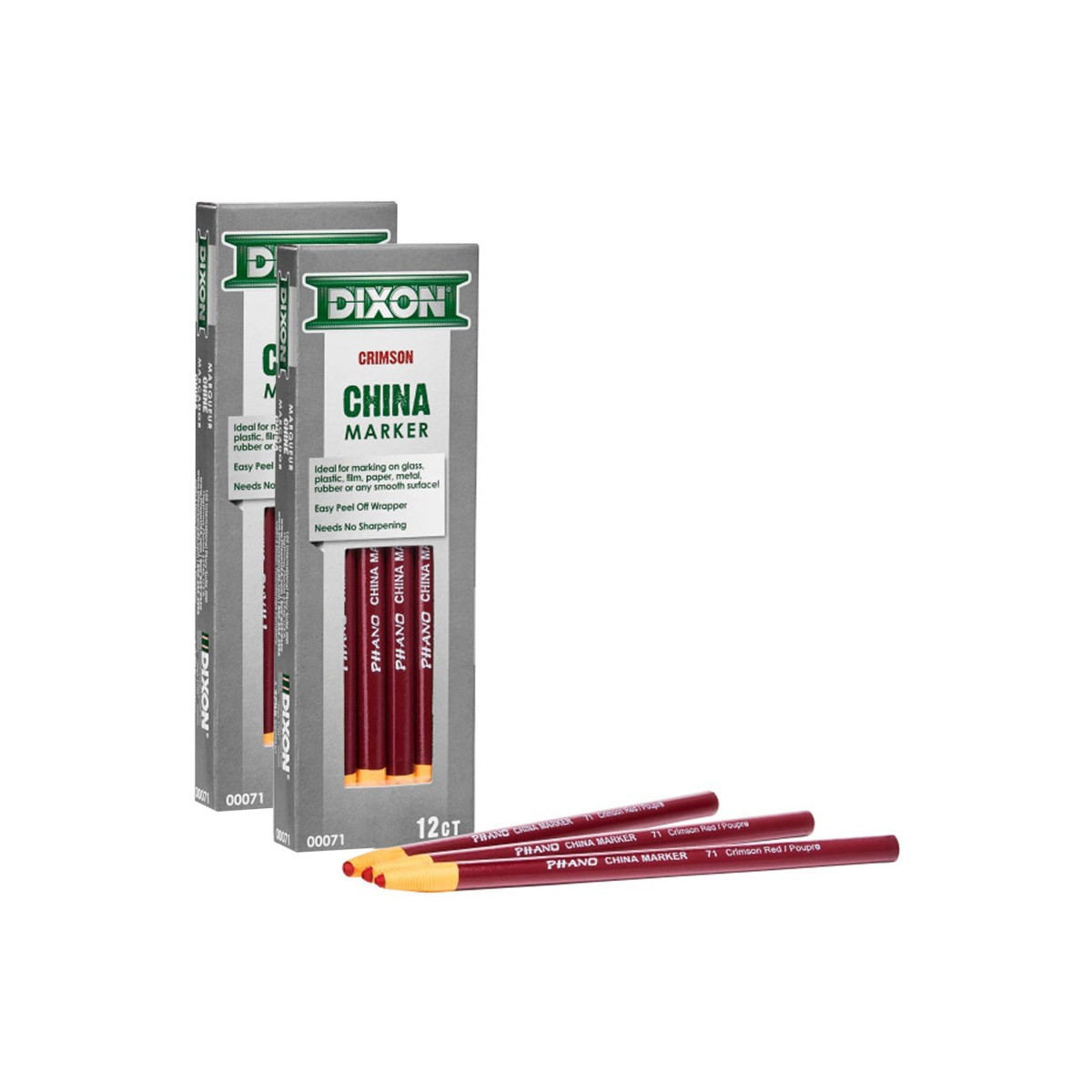 Phano china markers provide bold marks on glass, plastic, film, paper, metal, rubber, tile and more. Marks will wipe clean from non-porous surfaces. Each marker is paper wrapped with tear string for easy sharpening. Each pack includes 12 markers. Sold as 2 packs for a total of 24 markers.