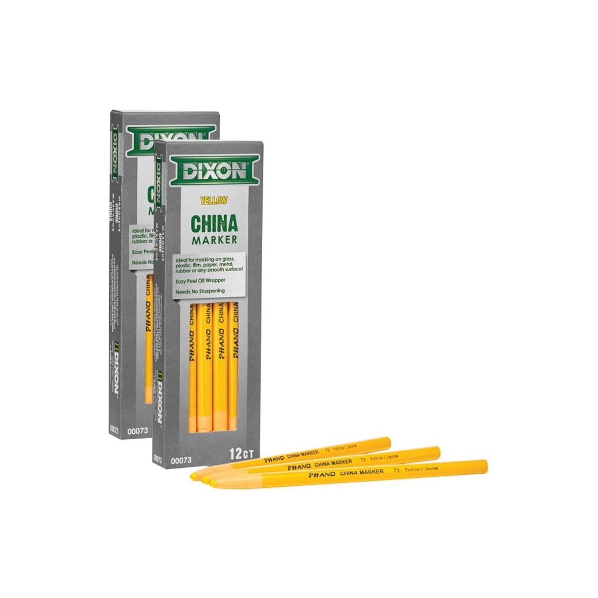 Phano china markers provide bold marks on glass, plastic, film, paper, metal, rubber, tile and more. Marks will wipe clean from non-porous surfaces. Each marker is paper wrapped with tear string for easy sharpening. Each pack includes 12 markers. Sold as 2 packs for a total of 24 markers.