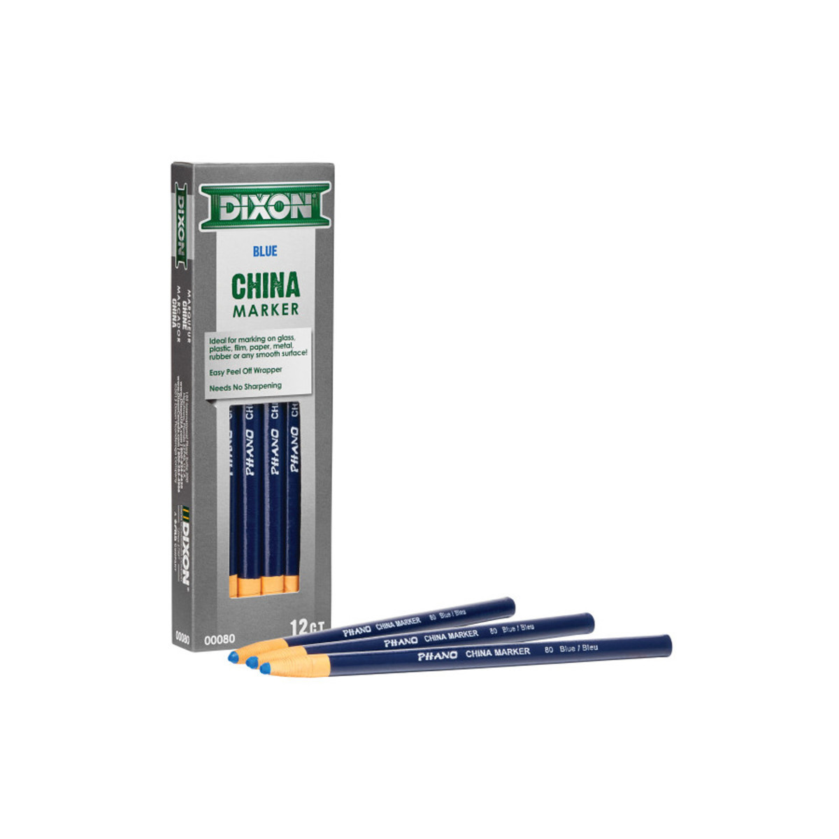 Phano china markers provide bold marks on glass, plastic, film, paper, metal, rubber, tile and more. Marks will wipe clean from non-porous surfaces. Each marker is paper wrapped with tear string for easy sharpening. Pack of 12.