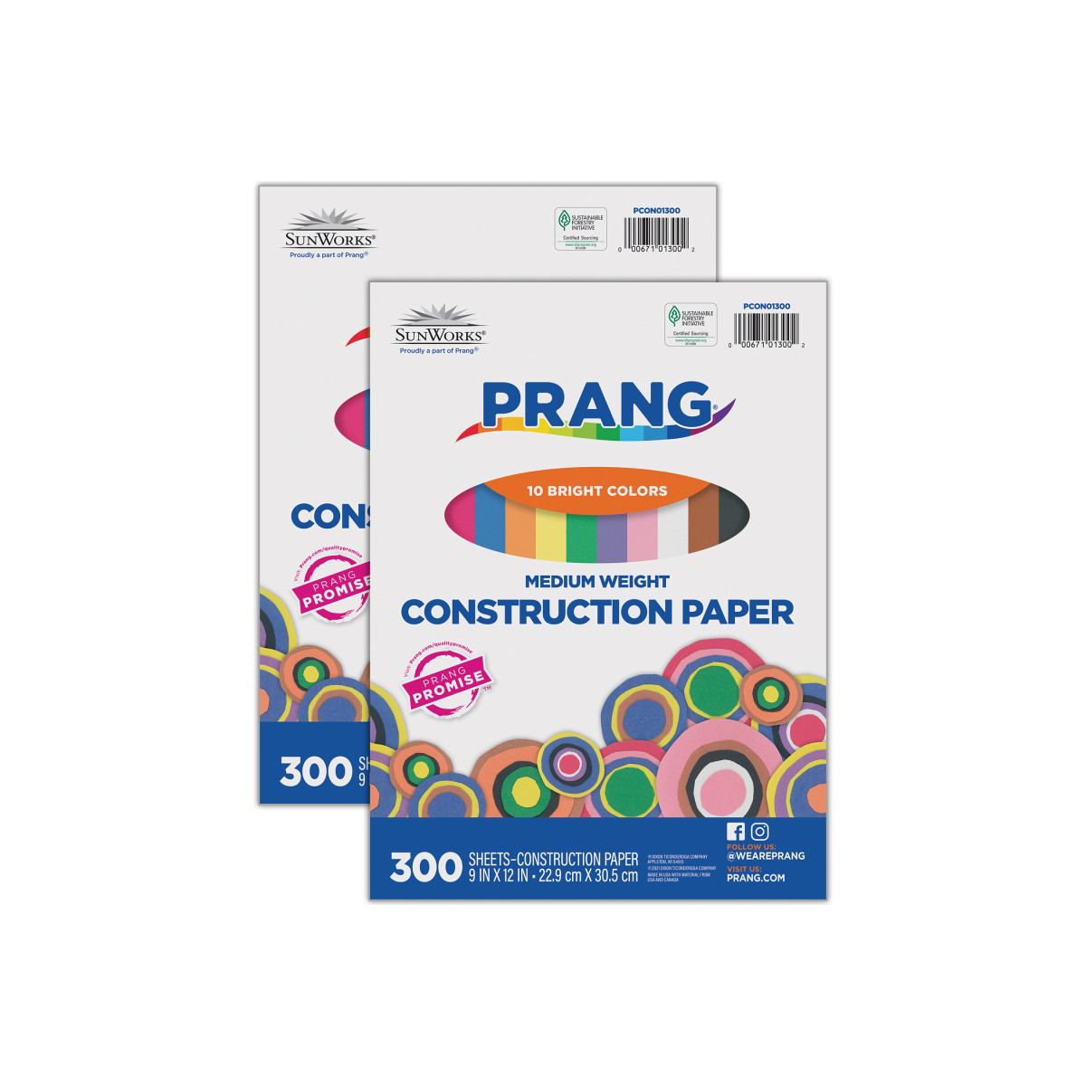 Prang® Medium Weight Groundwood Construction Paper provides the best value in school grade construction paper. It is the perfect solution for school projects and other arts and crafts. It has bright and consistent colors, is slightly textured and cuts and folds evenly without cracking. This 10 color assortment includes Scarlet, Black, Yellow-Orange, Brown, Pink, Violet, Blue, Holiday Green, White, and Yellow. Recyclable. Measures 9" x 12". Each pack includes 300 sheets. Sold as 2 packs for a total of 600 sheets.