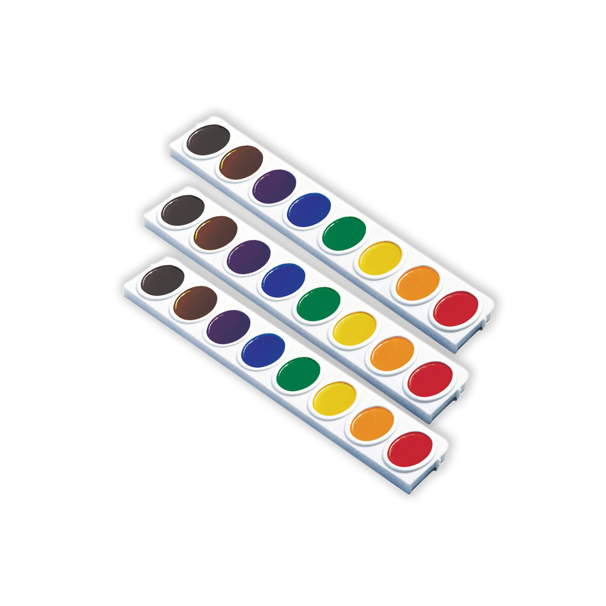 Quick. Easy. Economical. Eight vibrant colors ready to use in a snap! Same quality semi-moist paint as in the original. Watercolor refill tray simply snaps into your existing Oval-8 watercolor set. AP certified non-toxic. Made in the USA. Each pack includes 3 refill trays. Sold as 3 packs for a total of 9 refill trays.