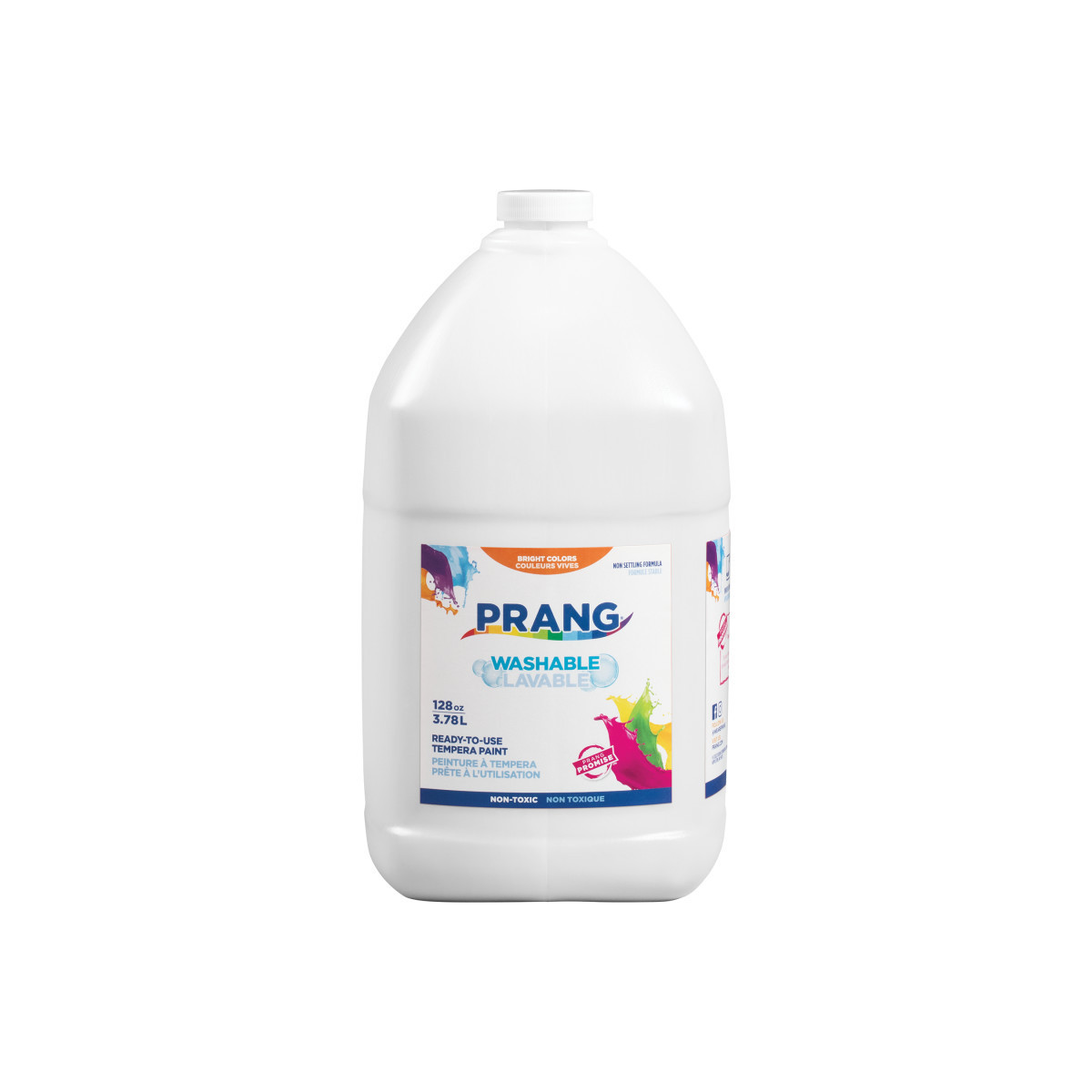 Prang Washable Paint features non-settling brilliant colors with bright lay down. Perfect for small children, daycare centers or any classroom setting. Bright, kid-pleasing colors wash easily from skin and most surfaces including clothing! No shaking or stirring—paint is ready-to-use! Dries to a satiny finish and will not rub off on hands or clothing. AP certified non-toxic. Includes 1 gallon of paint.