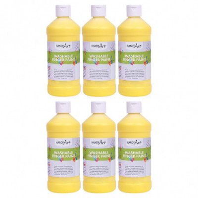 Indulge your senses with a seamless laydown that provides breathtaking vibrant colors to your painting. The safe non-toxic formula makes this the teacher's choice for young artists. No need to stir or shake thanks to the non-settling formula! This ultra washable version easily washes off hands and most clothing for a hassle free painting experience in the classroom and the living room as well! Each color comes in an easy-to-pour 16 oz bottle for easy dispensing. Sold as a pack of (6) 16 oz bottles of paint.
